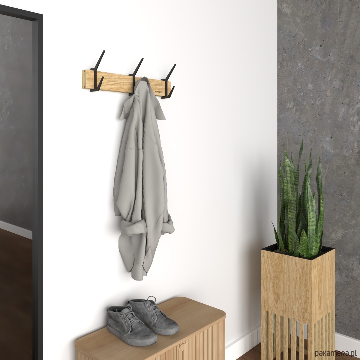 Idealnie sprawdzi się w roli organizera Twoich ubrań, toreb i akcesoriów. Jego minimalistyczny i nowoczesny design doskonale komponuje się z różnymi stylami wnętrzarskimi, od skandynawskich po industrialne, stanowiąc subtelny, ale charakterystyczny element dekoracyjny. Prosty w montażu, wieszak ten został zaprojektowany, by sprostać codziennym wyzwaniom, jednocześnie zachwycając swoją formą.