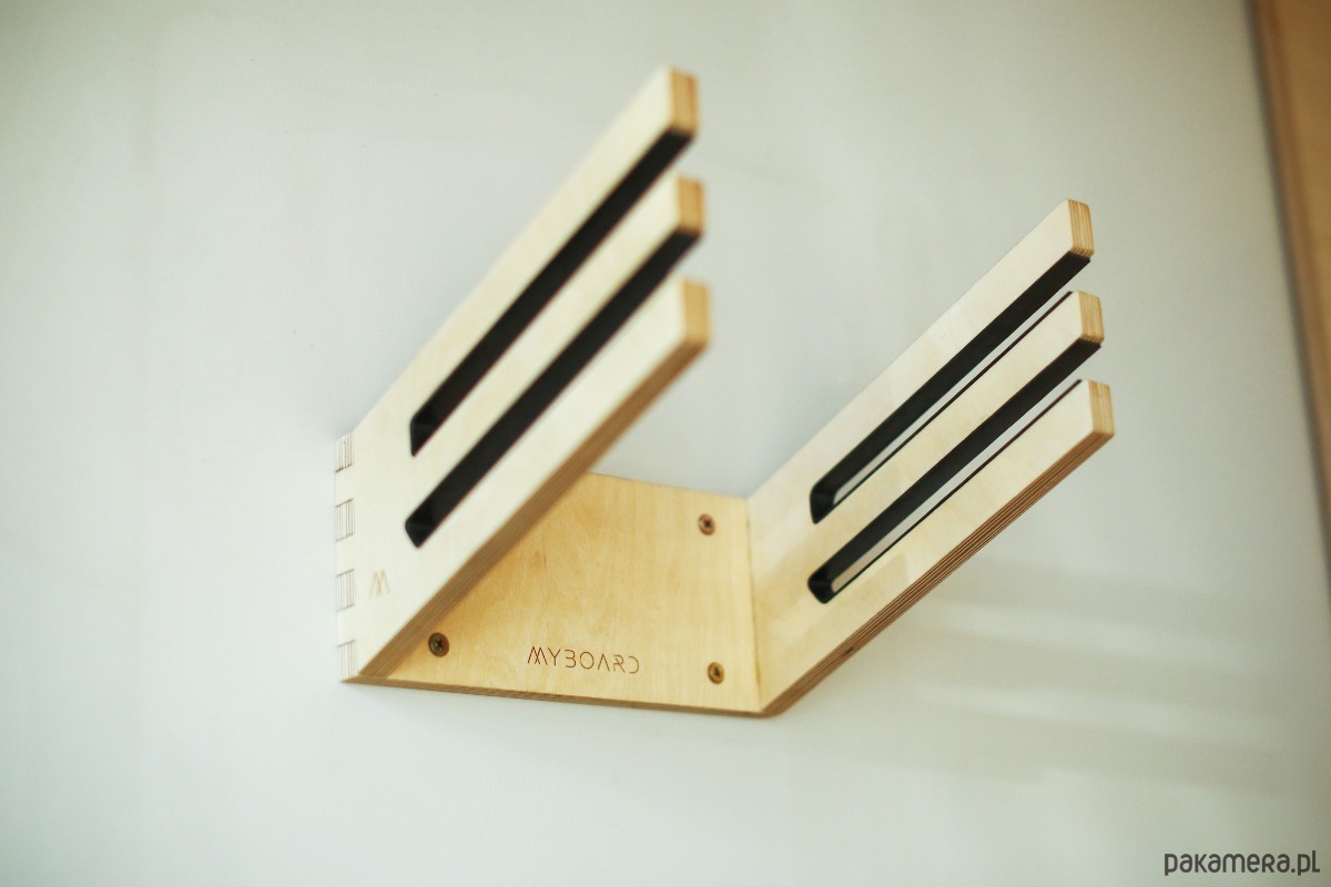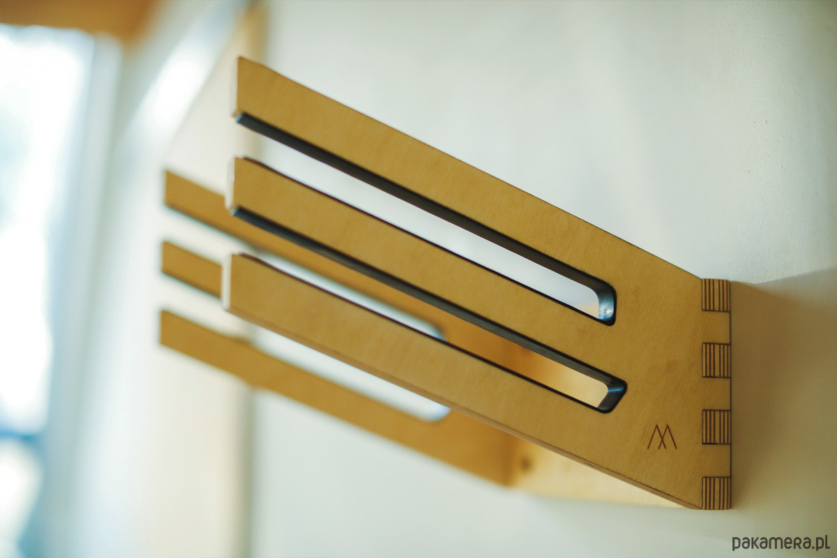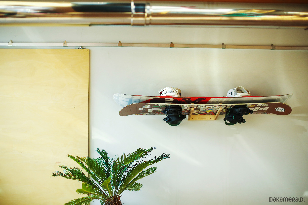 Wieszak na dwie deski snowboardowe. Funkcjonalny i bezpieczny sposób przechowywania desek. Zaprojektowany i wykonany w naszej pracowni. Prosta, czysta forma przedmiotu sprawia, że idealnie pasuje do każdego wnętrza.