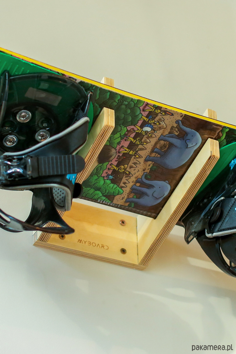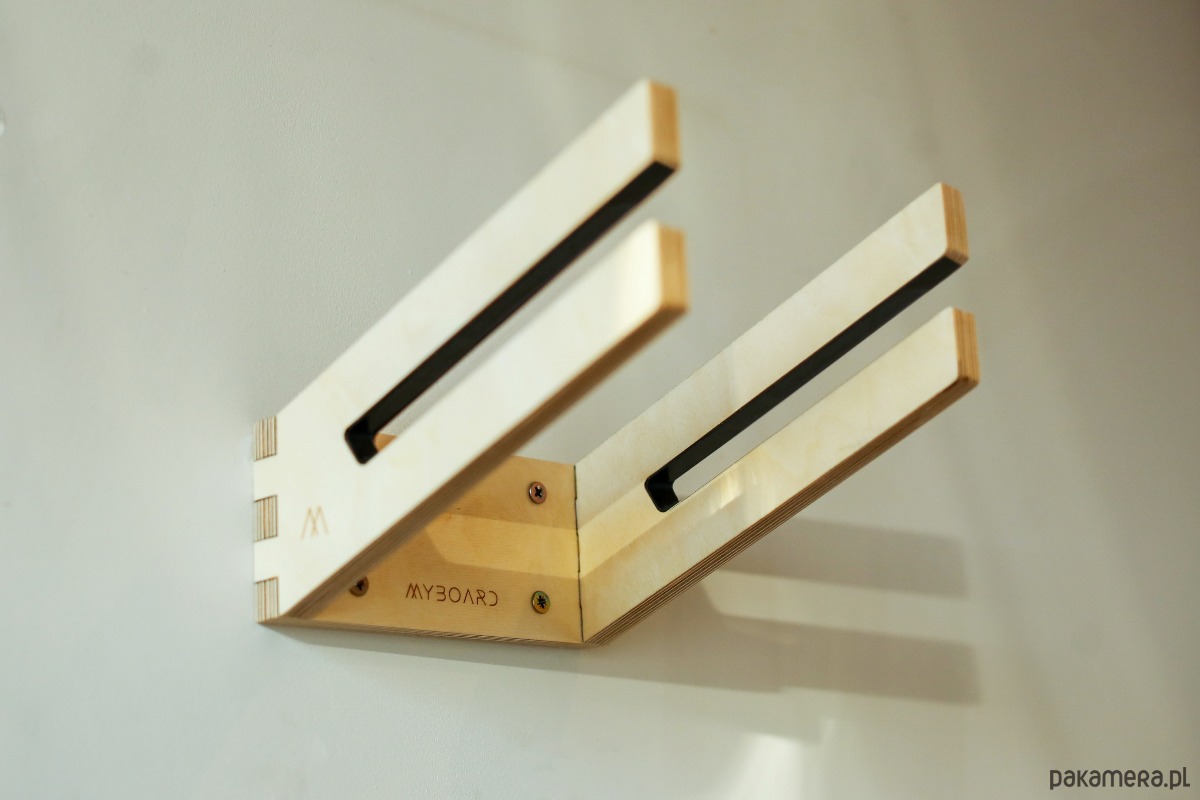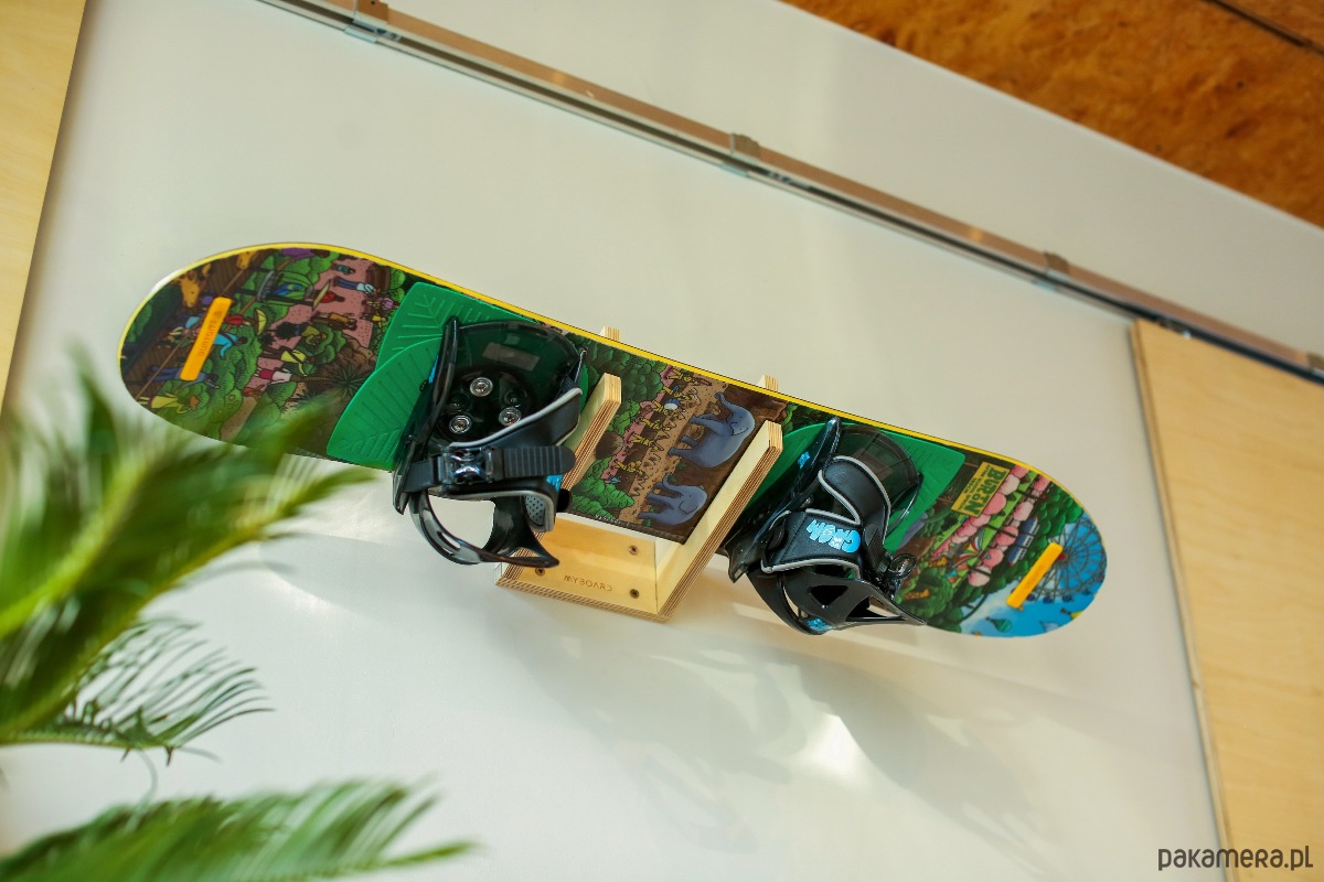 Wieszak ze wcięciem na jedną dziecięcą deskę snowboardową. Funkcjonalny i bezpieczny sposób przechowywania desek. Zaprojektowany i wykonany w naszej pracowni. Prosta, czysta forma przedmiotu sprawia, że idealnie pasuje do każdego wnętrza.