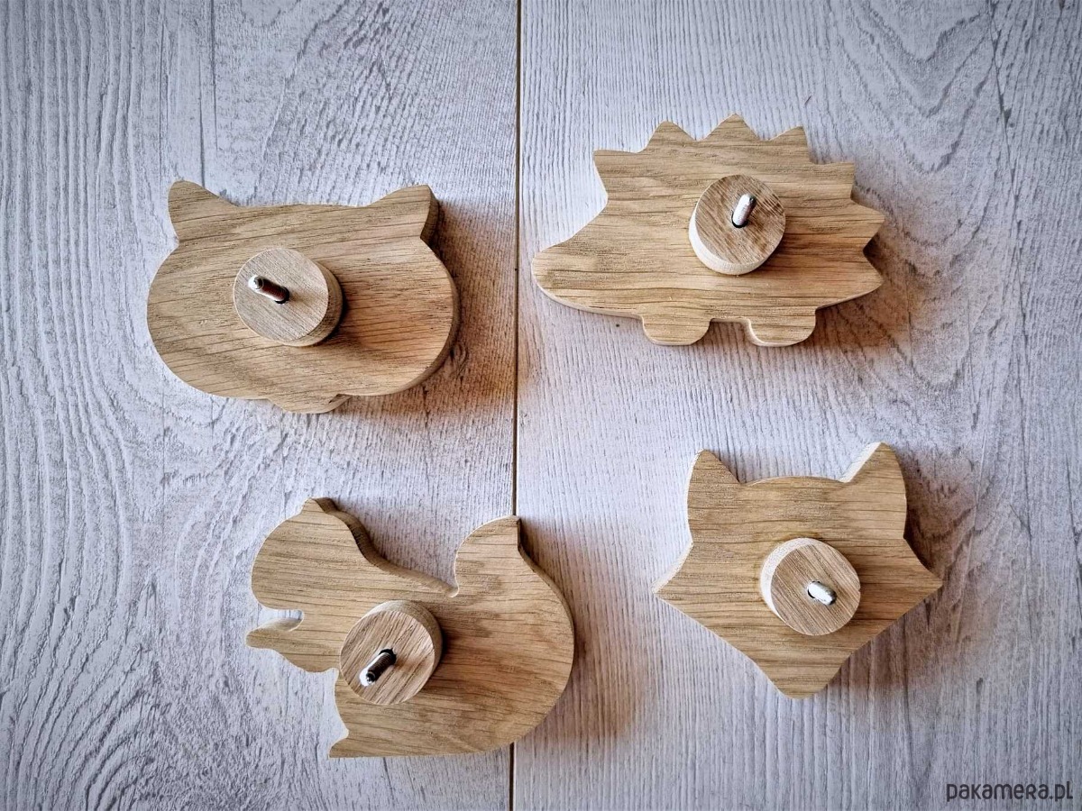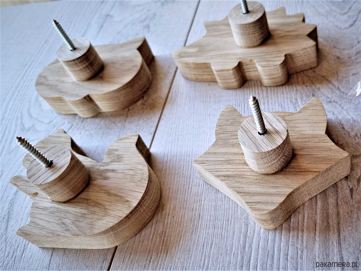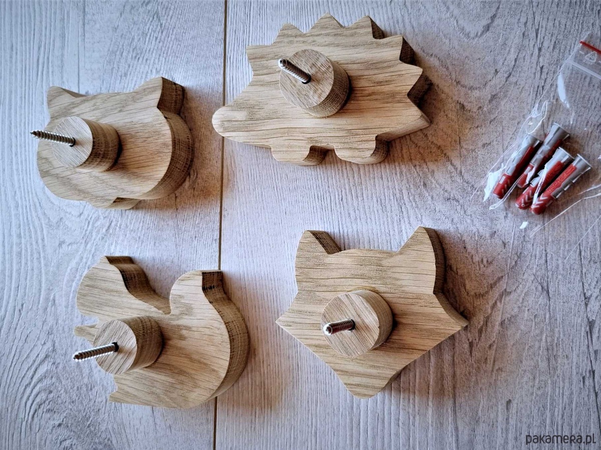 Wieszaki ścienne, zwierzątka, komplet z drewna