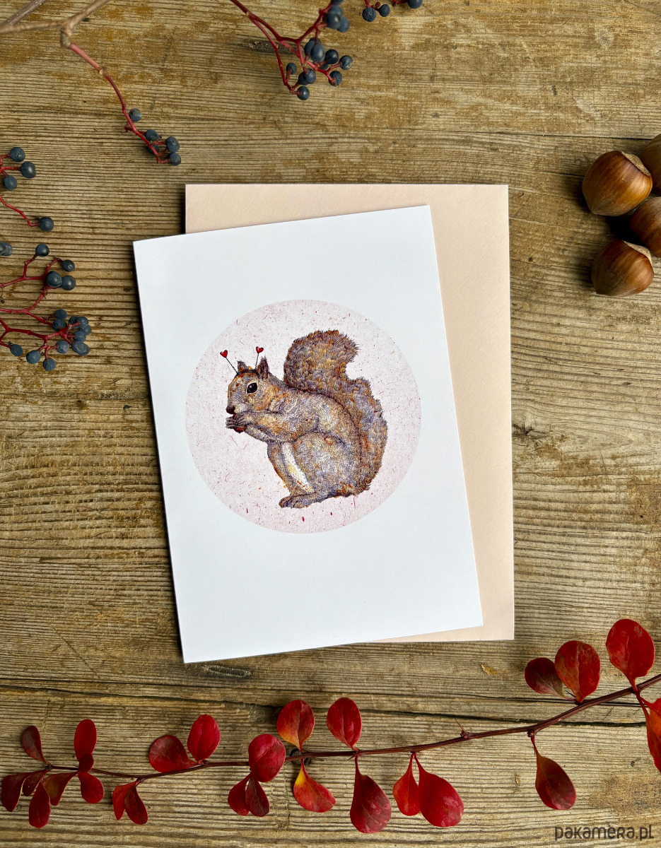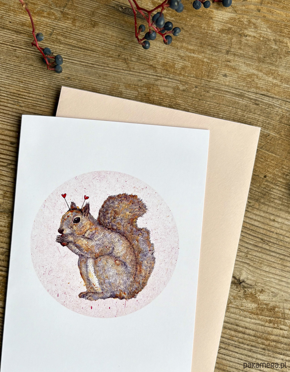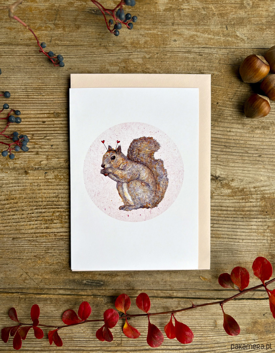 Wiewiórka Valentina- Kartka- Grafika- Ilustracja- Zwierzaki- Las