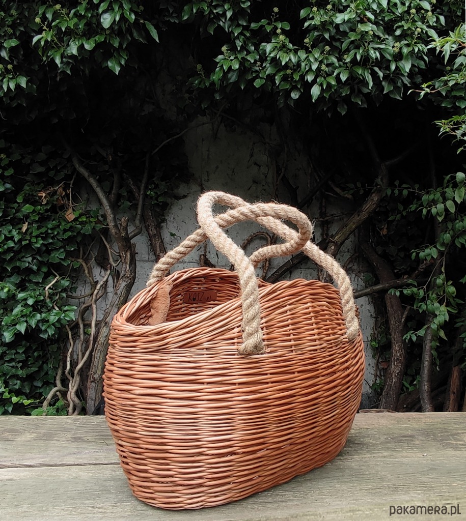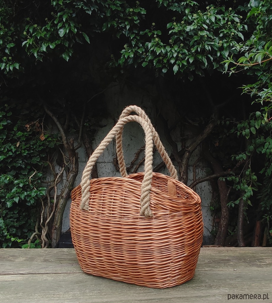 • Kolor - naturalna wiklina, niebarwiona, rączka z liny jutowej w kolorze naturalnym.