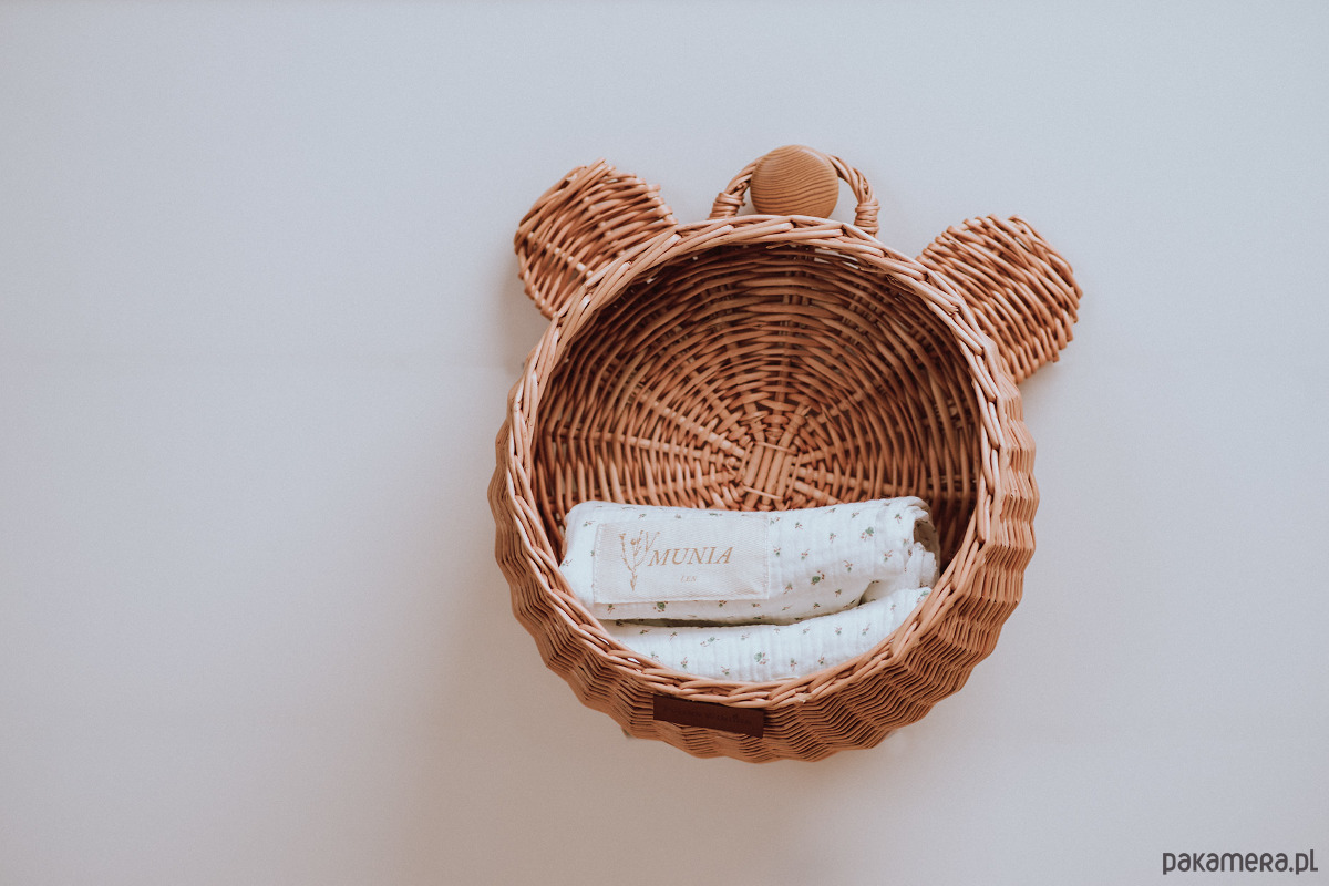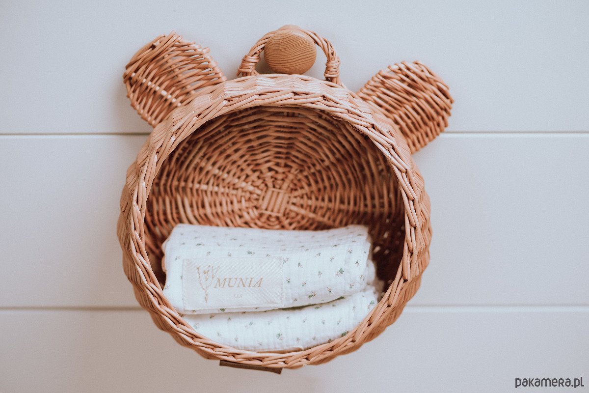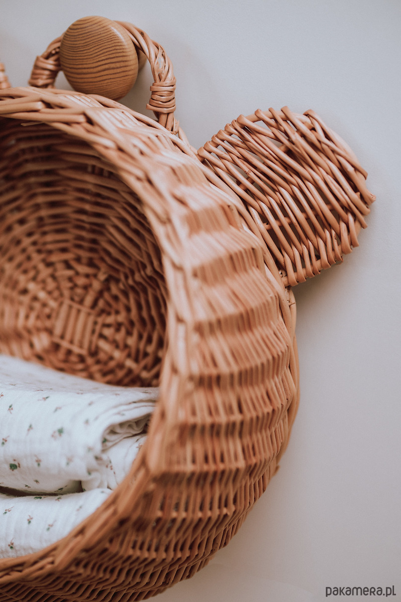 Piękny i stylowy wiszący wiklinowy koszyk z uszami w kształcie misia – doskonale nadaje się do przechowywania zabawek oraz drobnych przedmiotów tj. książeczki. Świetnie sprawdzi się także jako prezent dla dziecka. Koszyczek można wykorzystywać na różne sposoby, więc daje mnóstwo możliwości kreatywnej zabawy. Jest niezwykle praktyczny, więc będzie idealnym dodatkiem do każdego wnętrza.