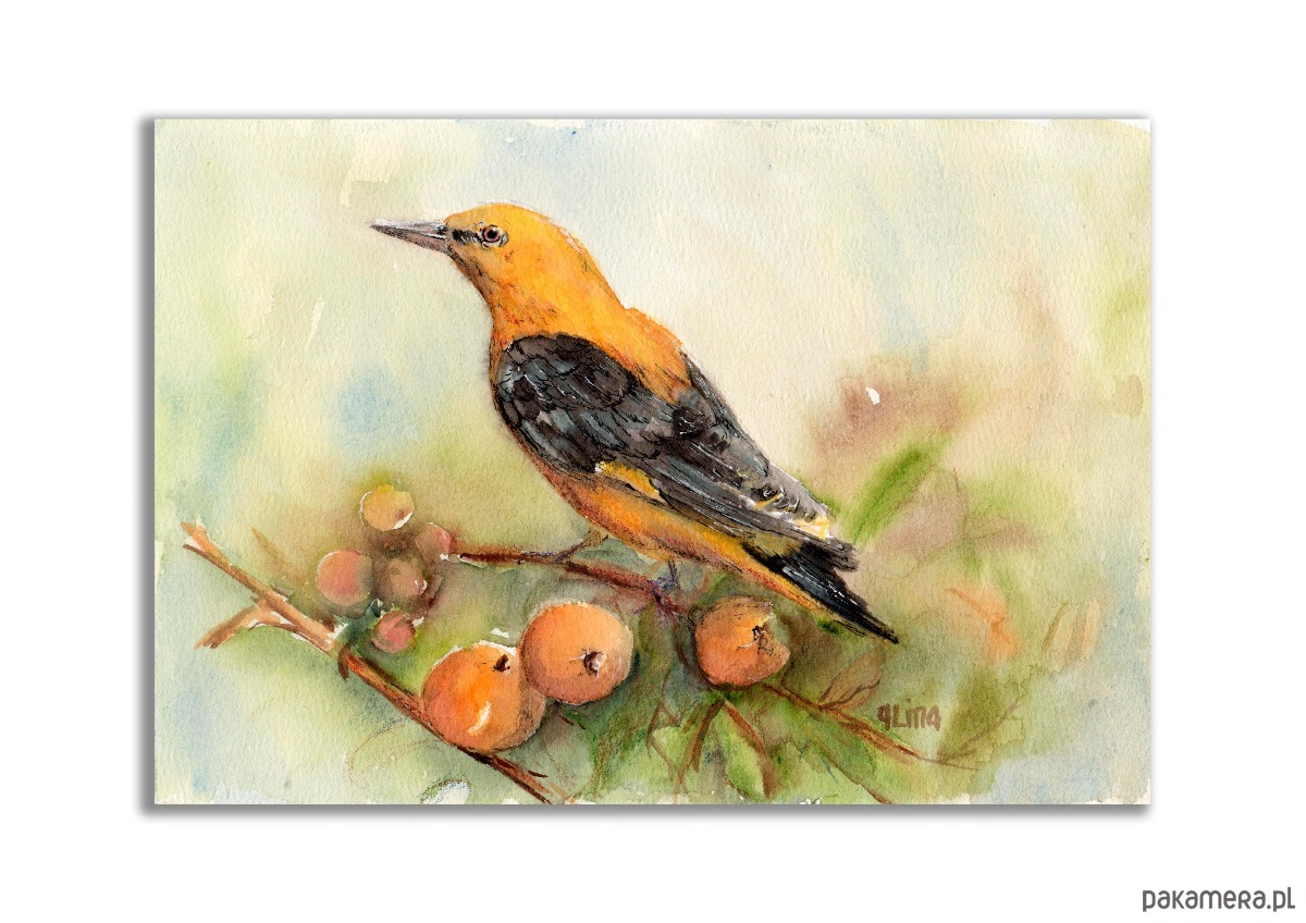 Obraz ręcznie malowany, wykonany farbami akwarelowymi znanych producentów; na białym, wysokogatunkowym papierze.