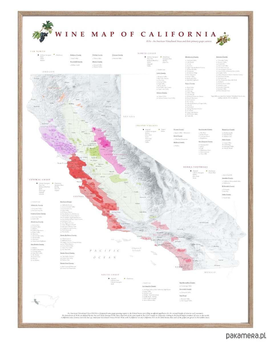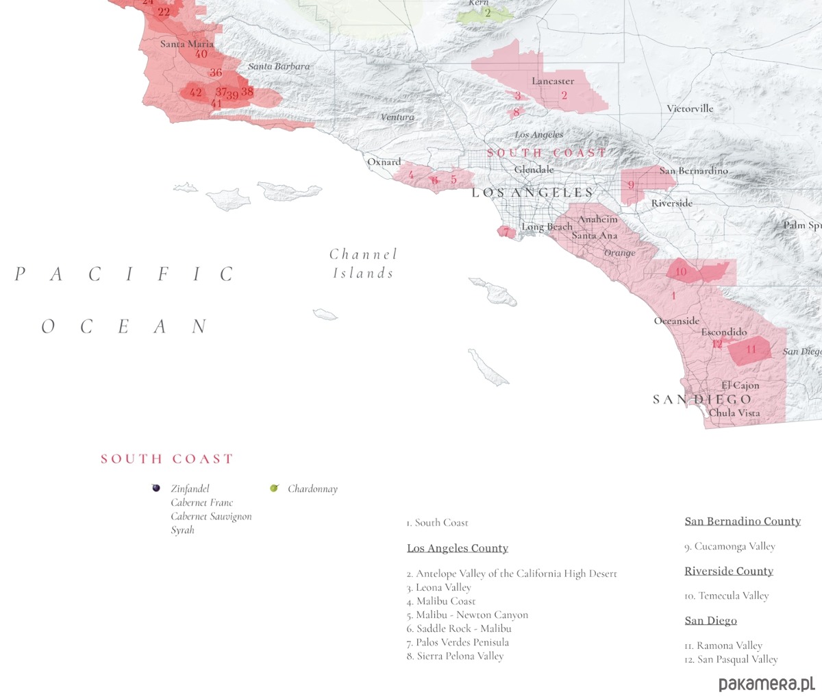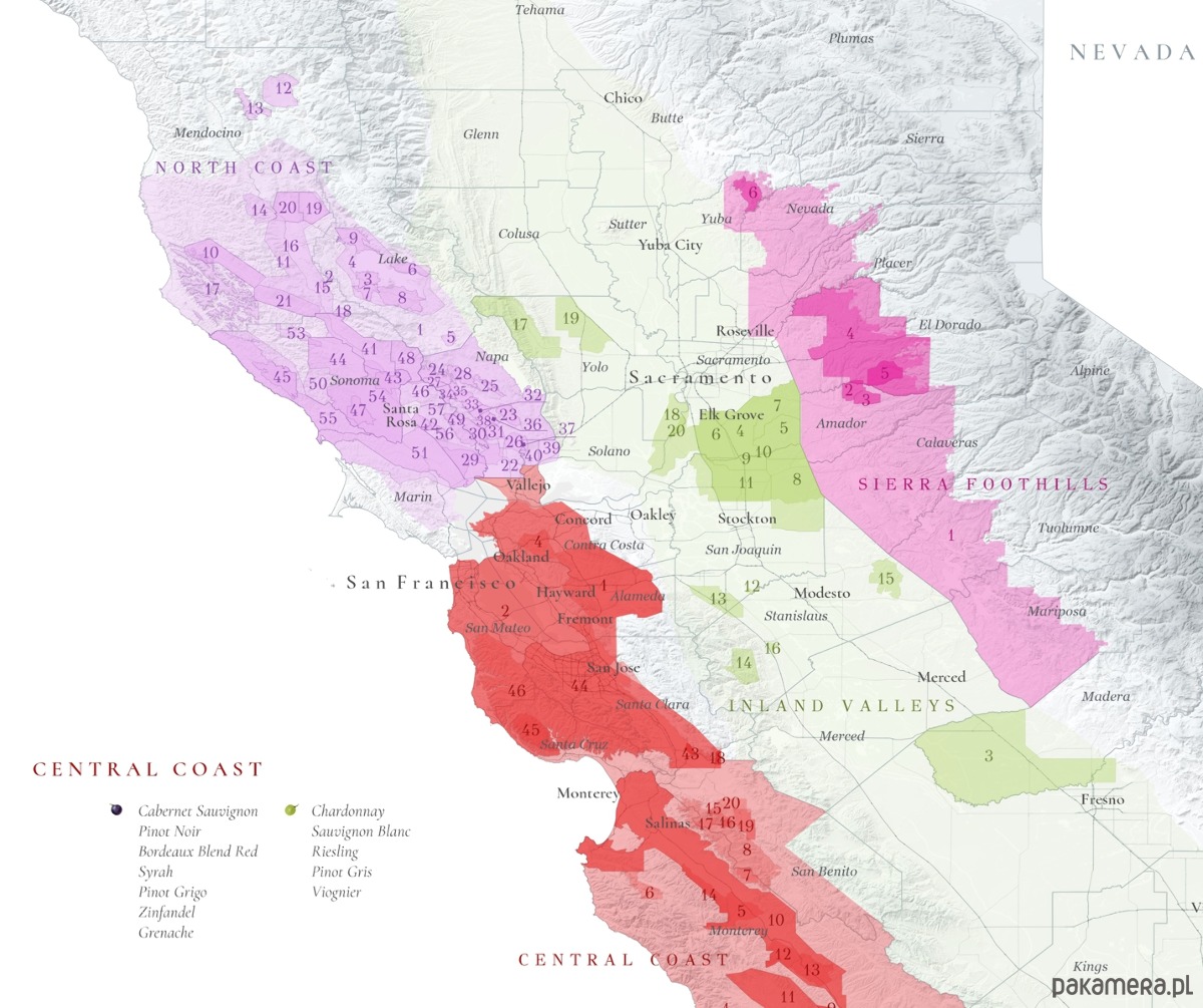 * Główne szczepy winorośli w tych rejonach z podziałem na białe i czerwone.