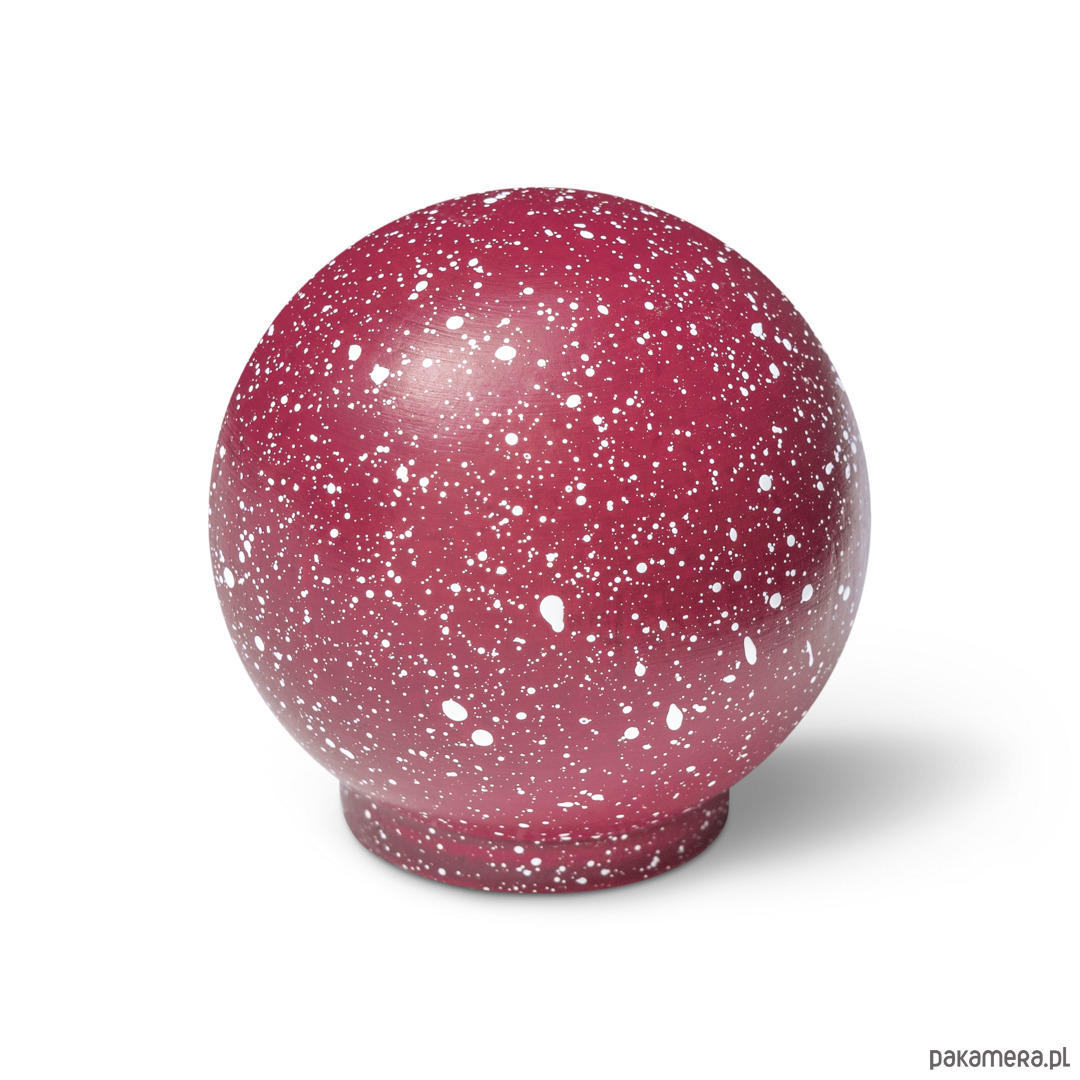 Gałka Ren z kolekcji Melange jest wariacją na temat chaosu, ale i harmonii. Na pierwszy rzut oka choć kompozycja kropek wydaje się chaotyczna to też pokrywając w pełni sferę kuli staję się harmonijnym jej wykończeniem. Kompozycja domknięta.