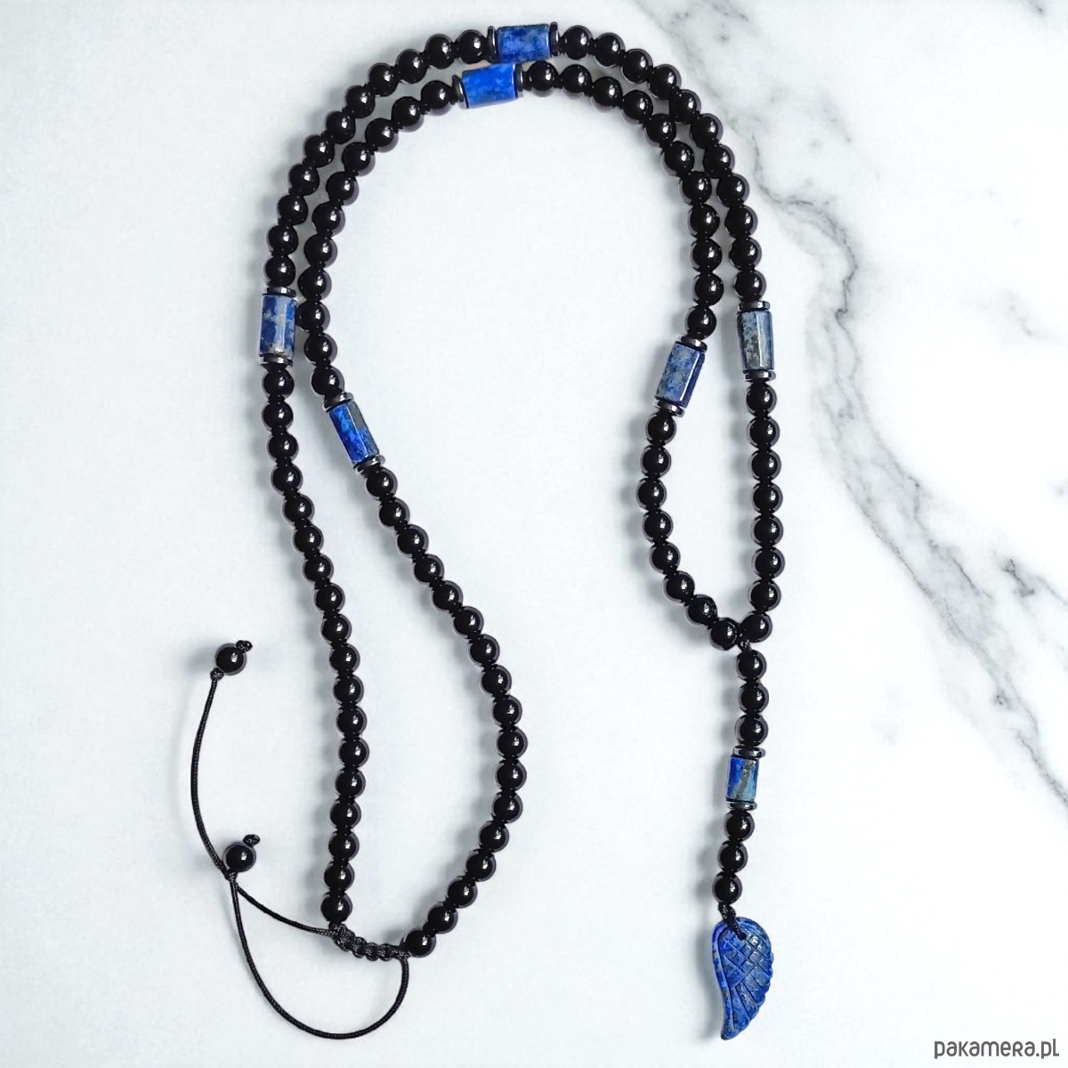 WING : lapis lazuli, onyks : naszyjnik długi : skrzydło anioła