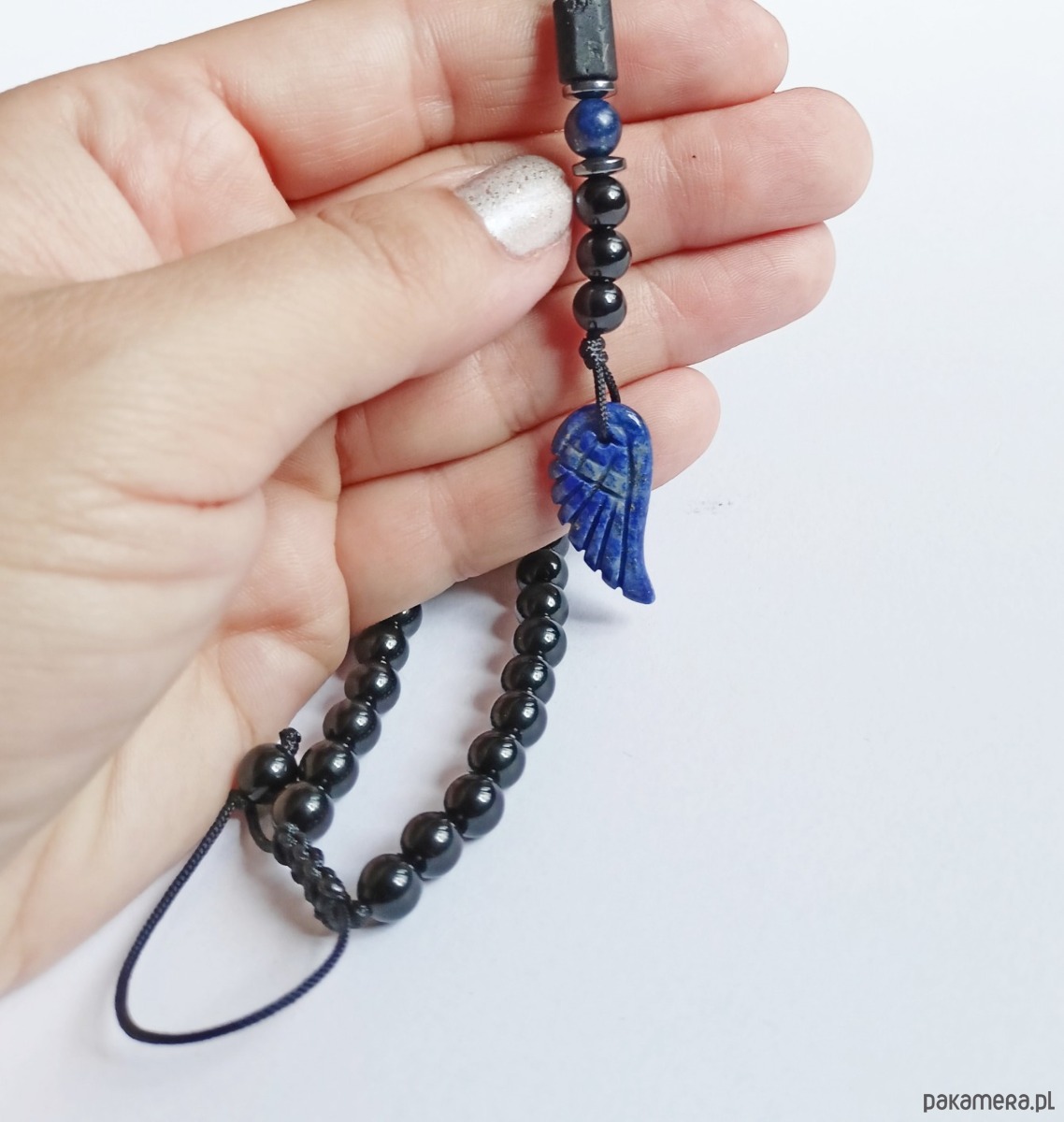 WING : lapis lazuli, onyks, turmalin : naszyjnik długi : skrzydło anioła
