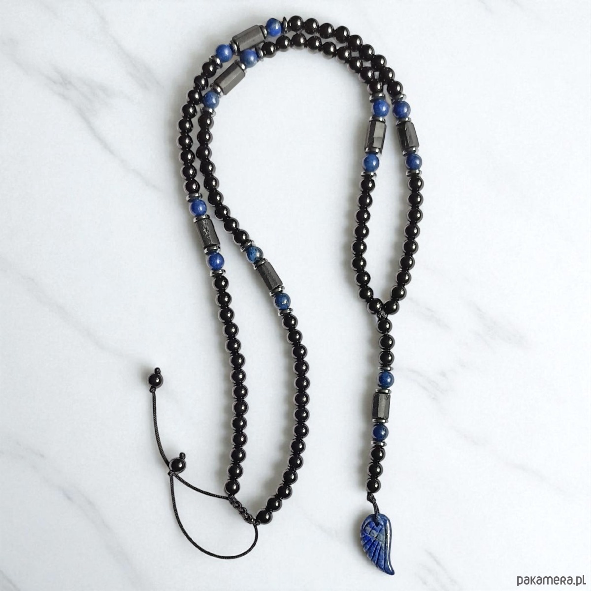 WING : lapis lazuli, onyks, turmalin : naszyjnik długi : skrzydło anioła