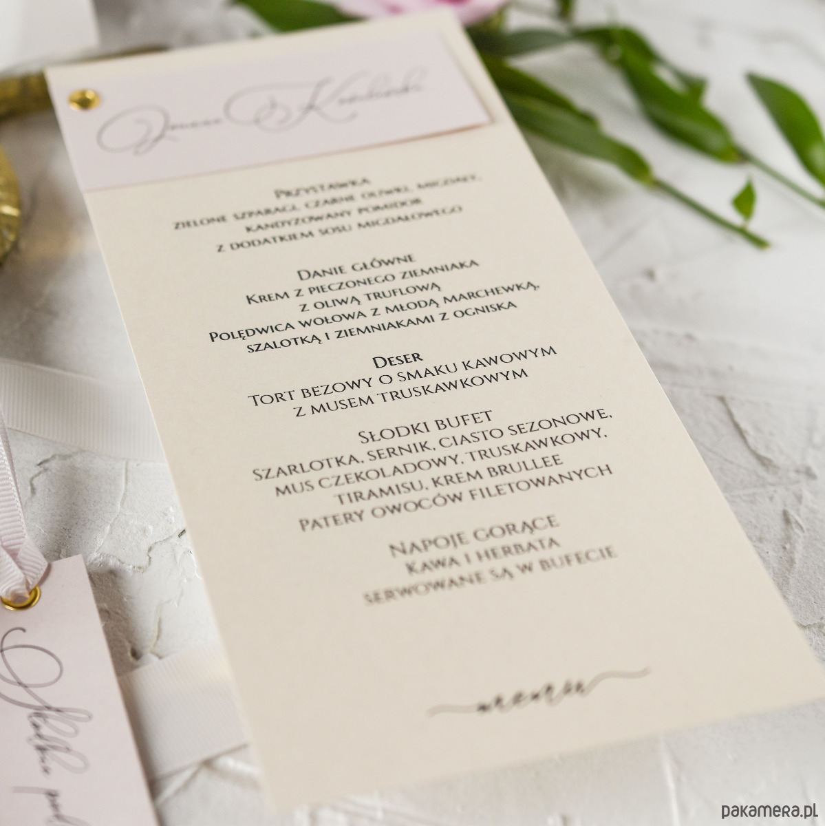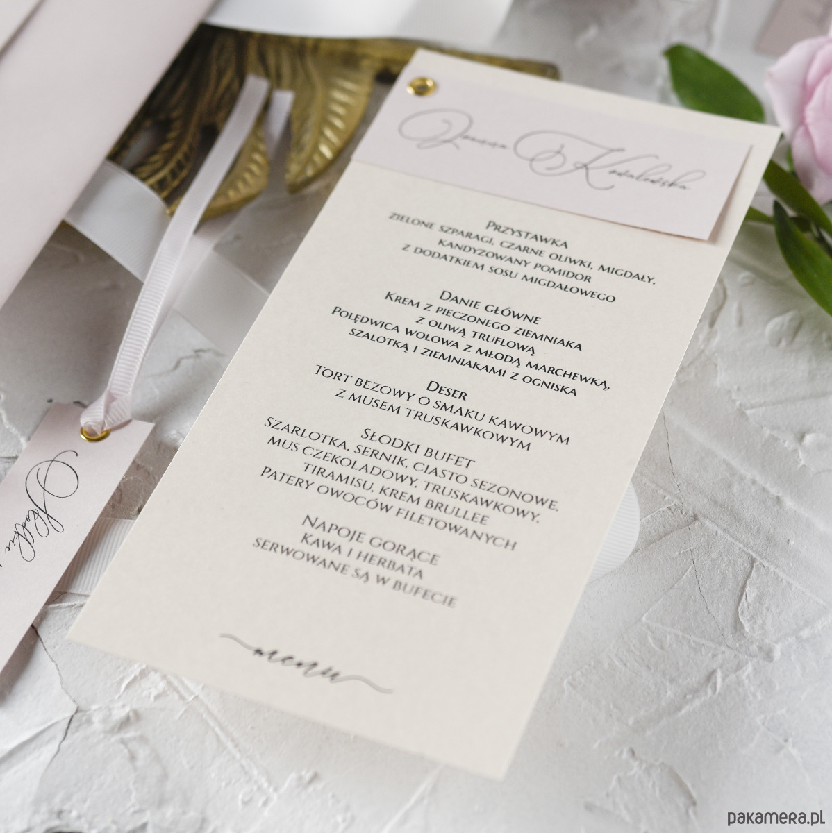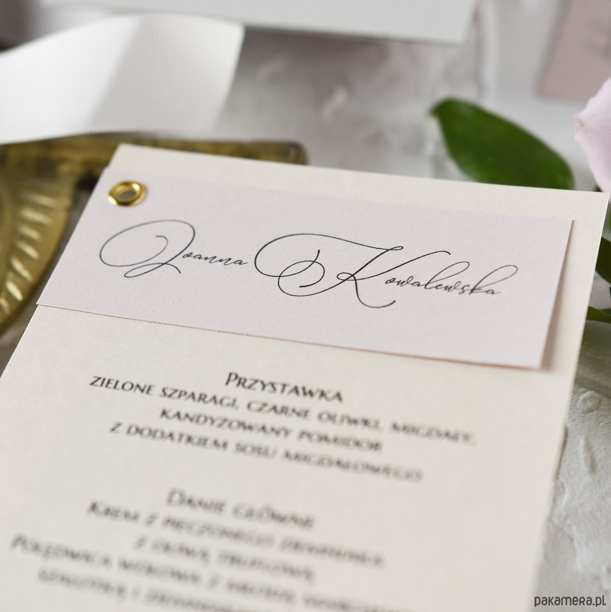 Winietki i menu są częścią kolekcji "Grace", w butiku znajdziesz wiele innych papierowych dodatkow w tym samym stylu, aby Wasze przyjęcie było dopieszczone do ostatniego szczegółu:)