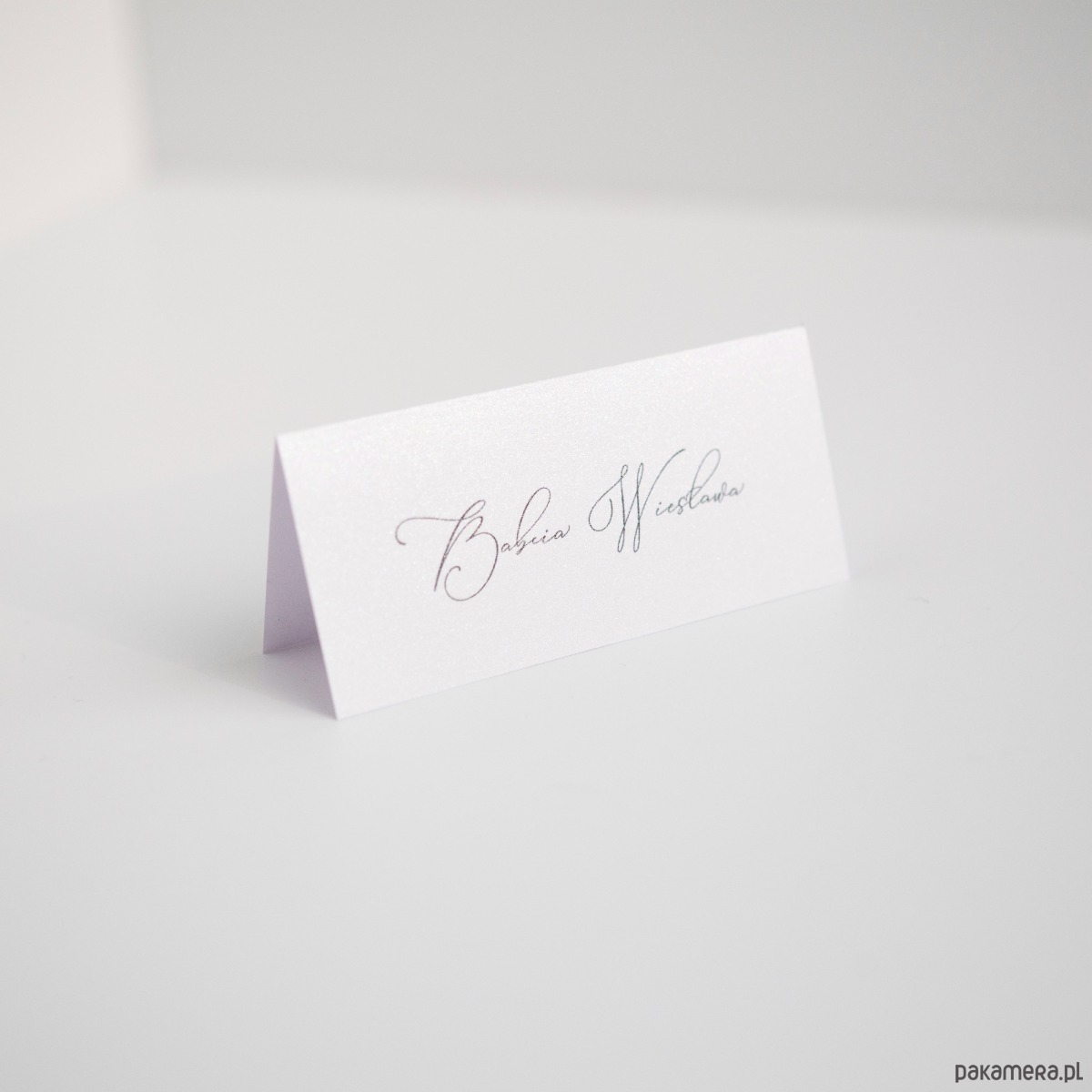 Komplet 10 sztuk klasycznych białych winietek, wykonanych na pięknie mieniącym się papierze o metalicznym połysku.