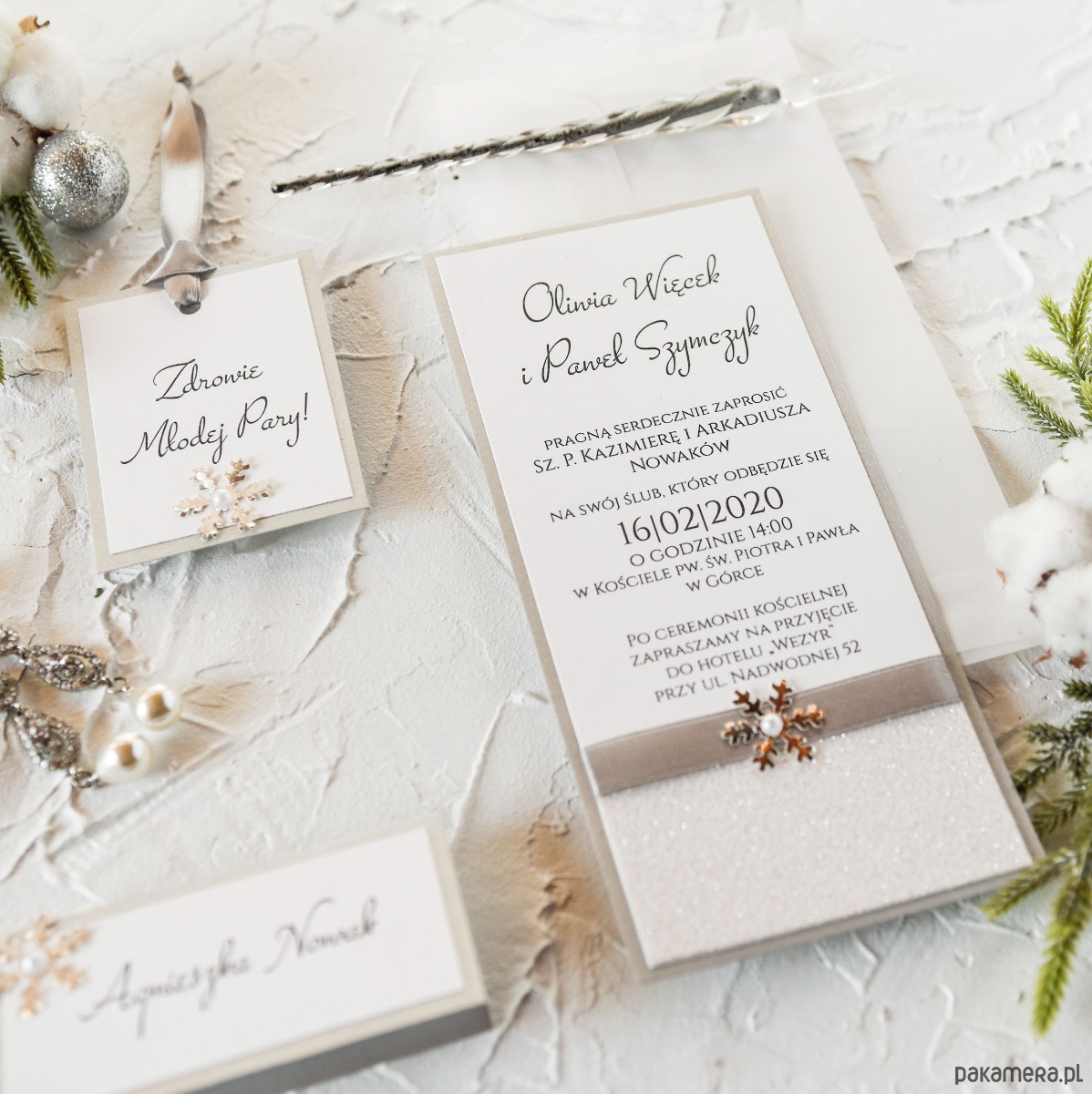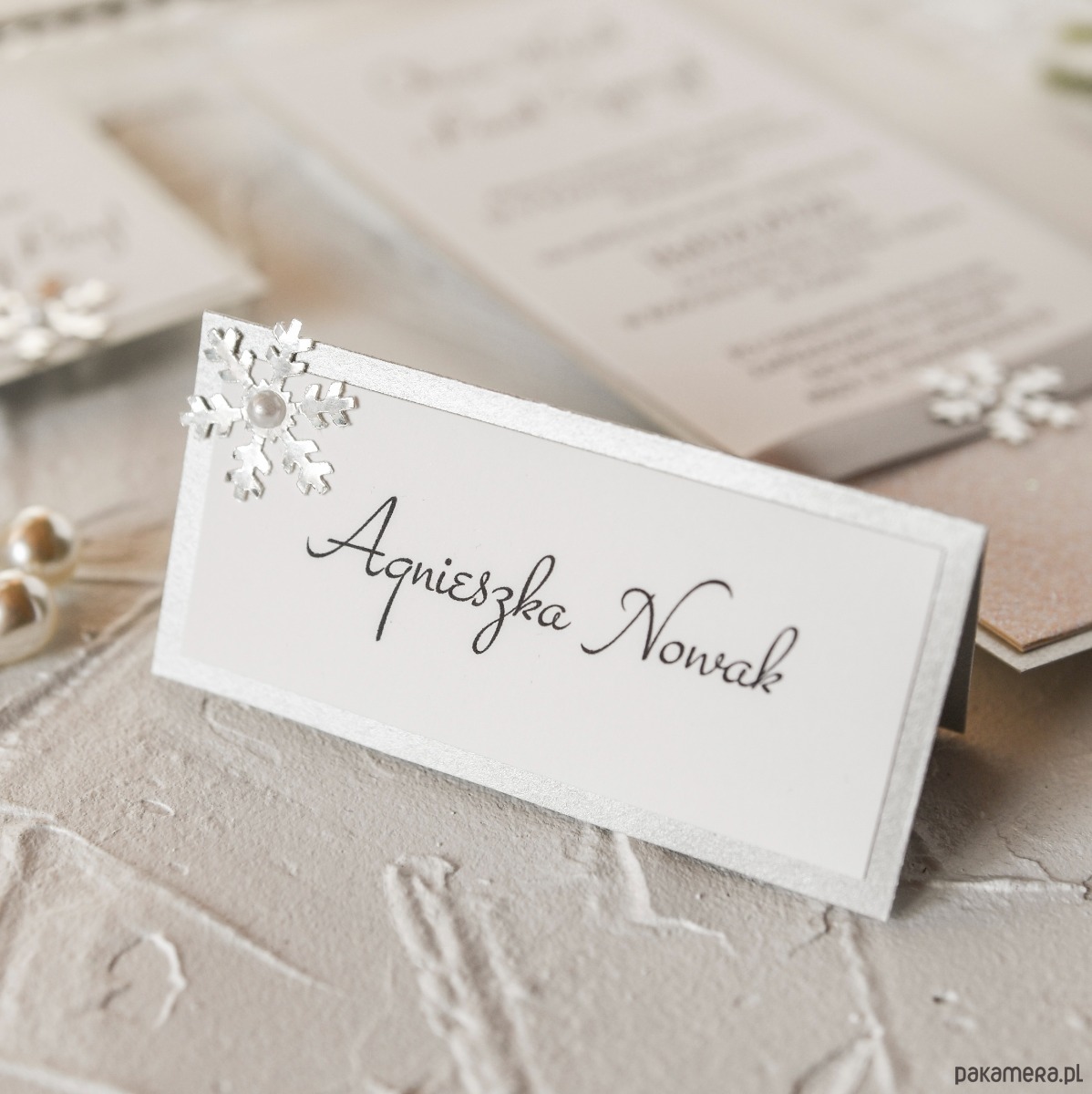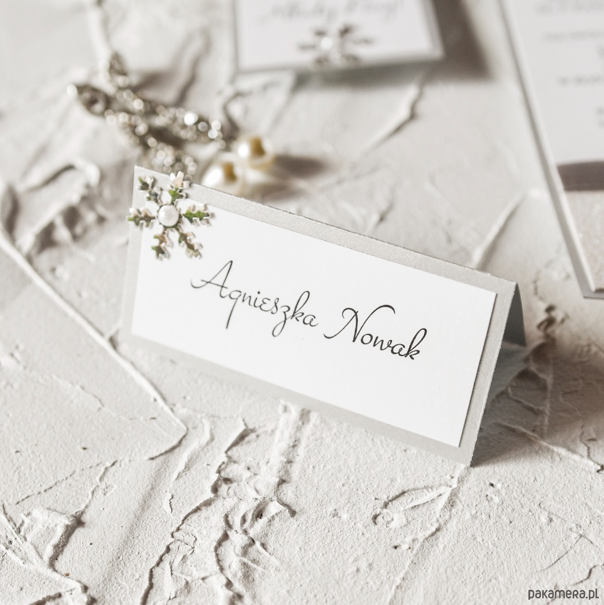 Zestaw 10 sztuk zimowych winietek na stoły weselne.