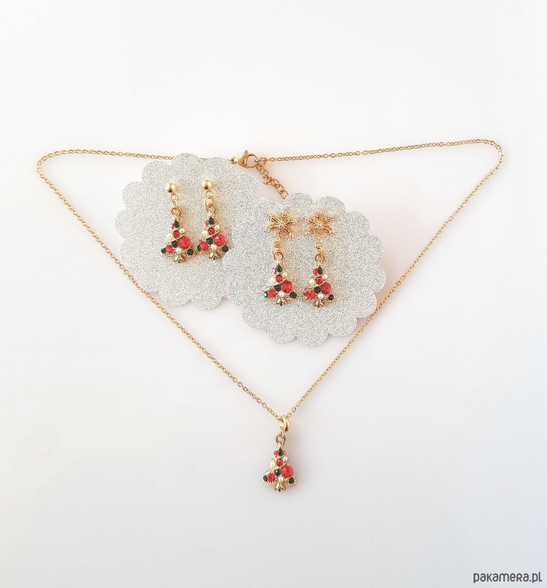 Śnieżynki wykonane z mosiądzu platerowanego złotem i cyrkonii, zawieszka choinka z metalu.
