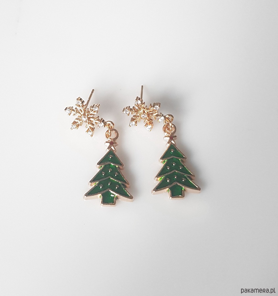 Śnieżynki wykonane z mosiądzu platerowanego złotem i cyrkonii, zawieszka choinka z metalu.