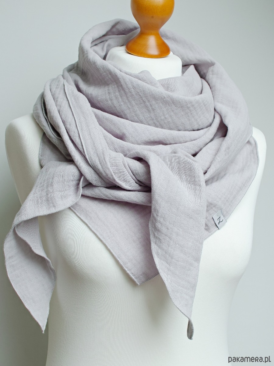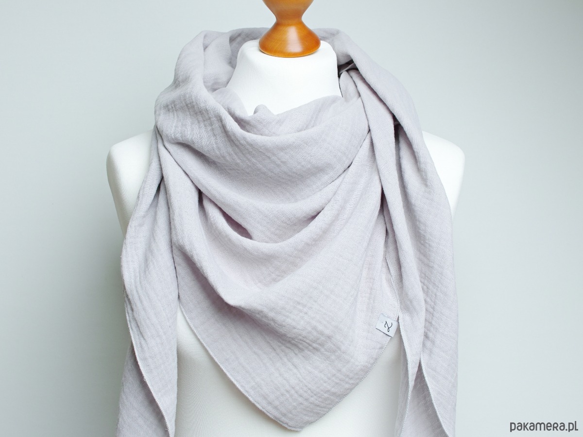 Miękka, lekka i niezwykle przyjemna w dotyku chusta damska z bawełnianego muślinu w delikatnym odcieniu popielatym. Naturalna tkanina jest przyjemna dla skóry, oddychająca i idealna na każdą porę roku — sprawdzi się zarówno wiosną i latem, jak i jako lekka osłona jesienią.
