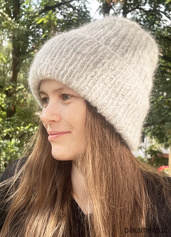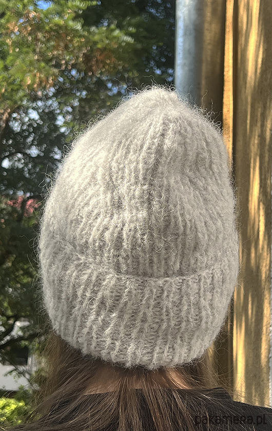 Czapka jest oversize, jest rozciągliwa, można ją dowolnie wywijać. Jest miękka i puchata.