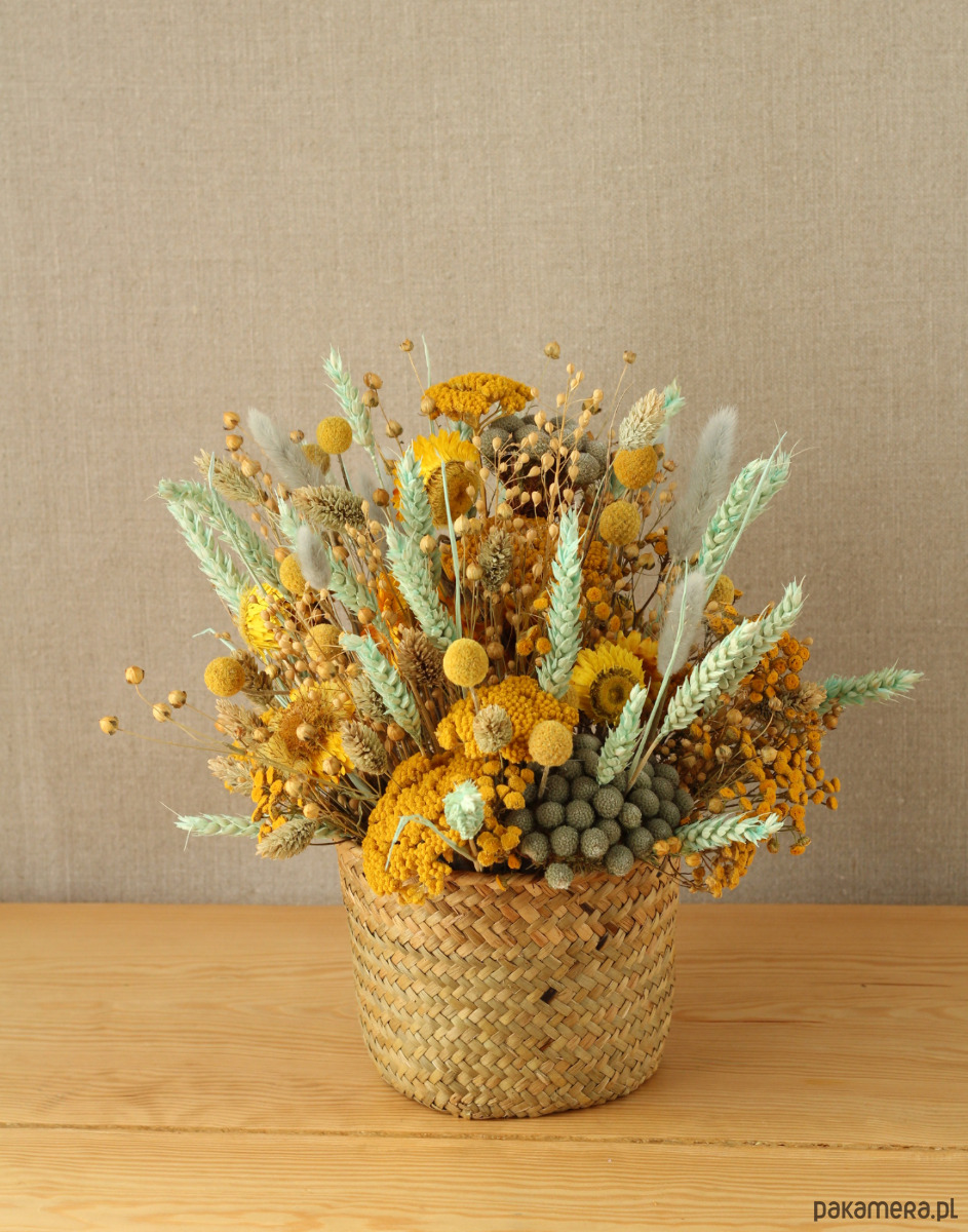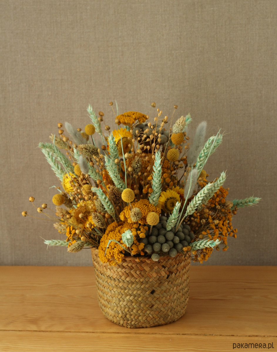 Kompozycja jest ciepłym naturalnym akcentem do wnętrza w stylu minimalistycznym, boho, rustykalnym lub tradycyjnym.