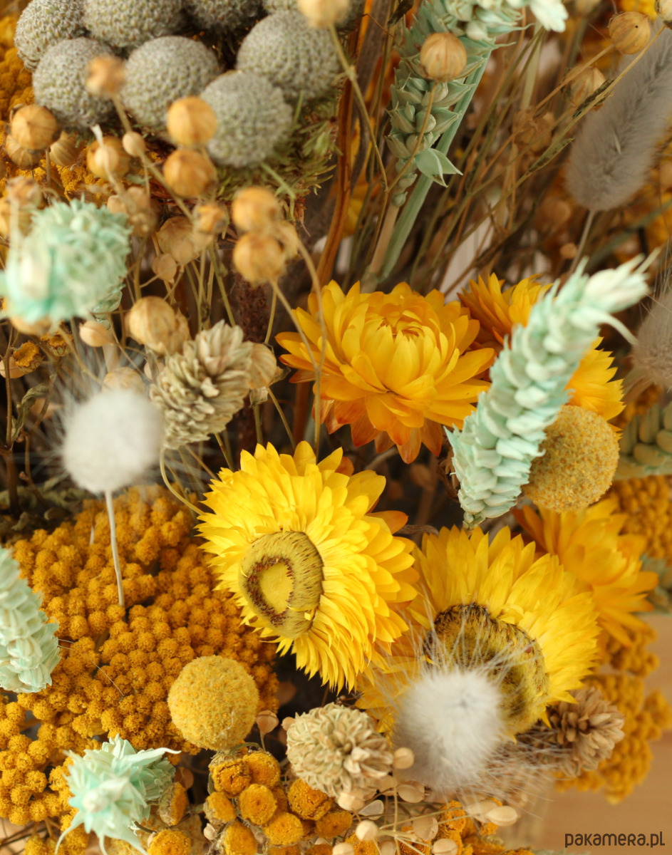 Zrobiona ręcznie- ze starannością, z pięknych suszonych kwiatów.