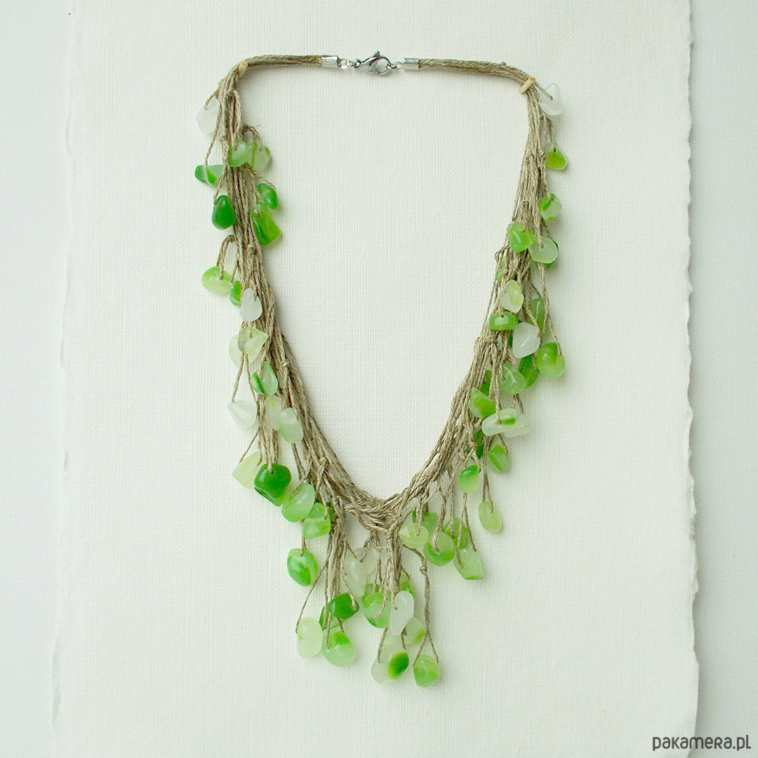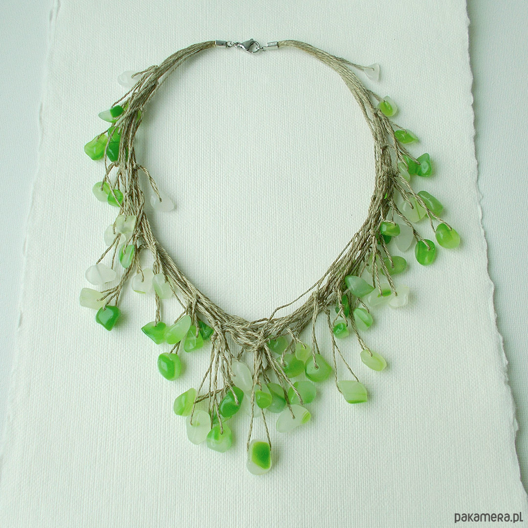 Oryginalny naszyjnik na bazie naturalnego lnu