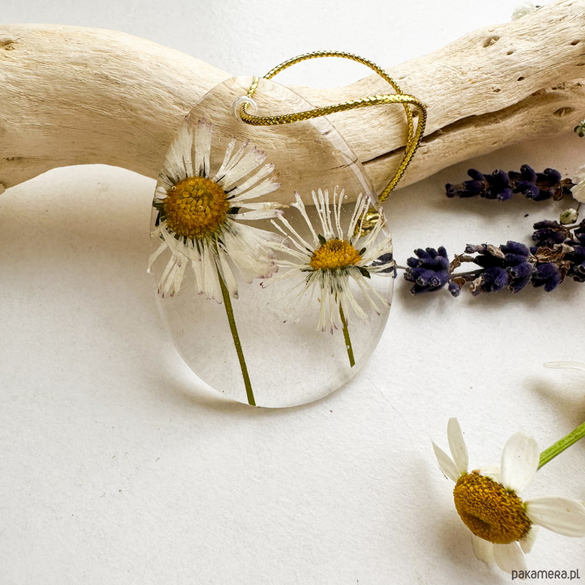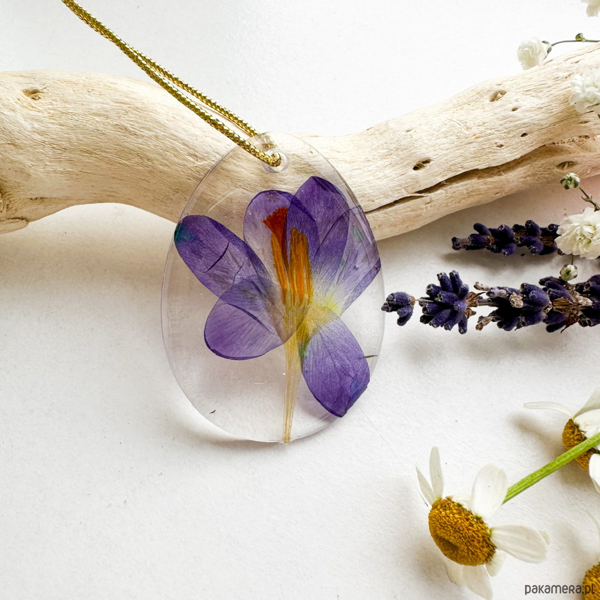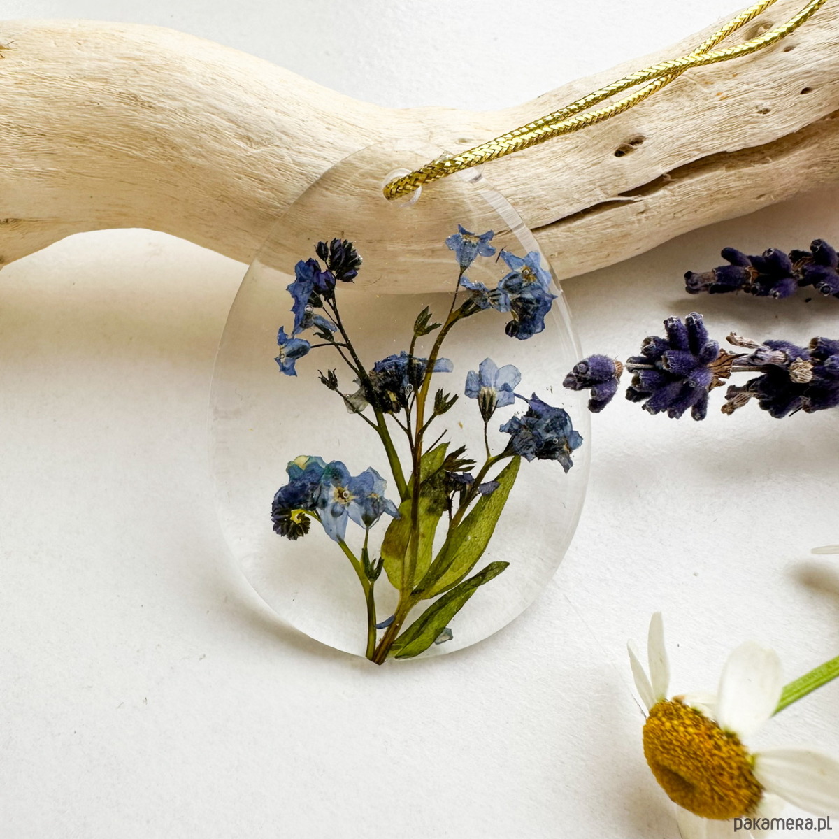 Niepowtarzalne, ręcznie robione zawieszki wielkanocne z pokrytymi żywicą suszonymi kwiatami. Zestaw zawiera 5 sztuk jajeczek na sznurku wykonanych z pleksi (zatem nie da się ich stłuc). Każda ozdoba ma wys 5cm.