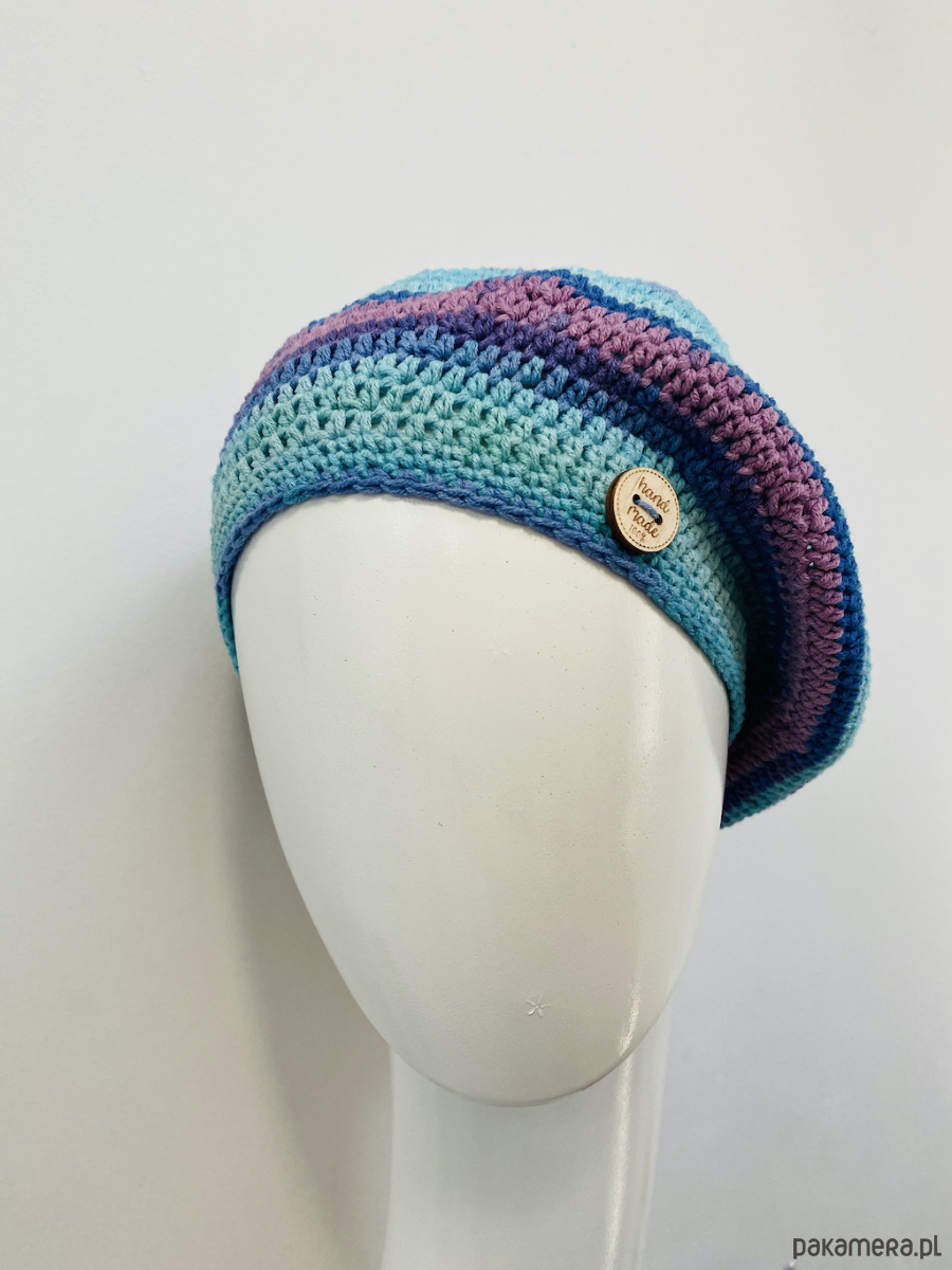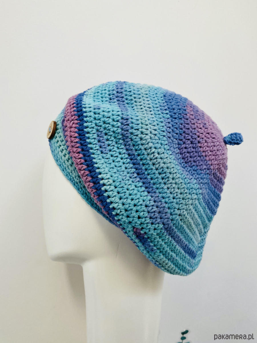 Wiosenny beret damski z antenką ręcznie robiony bawełna one size