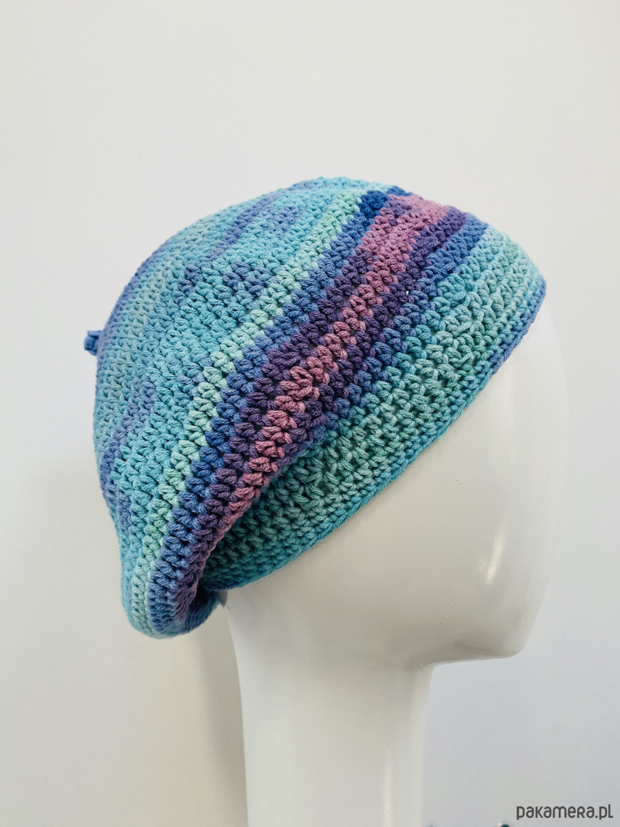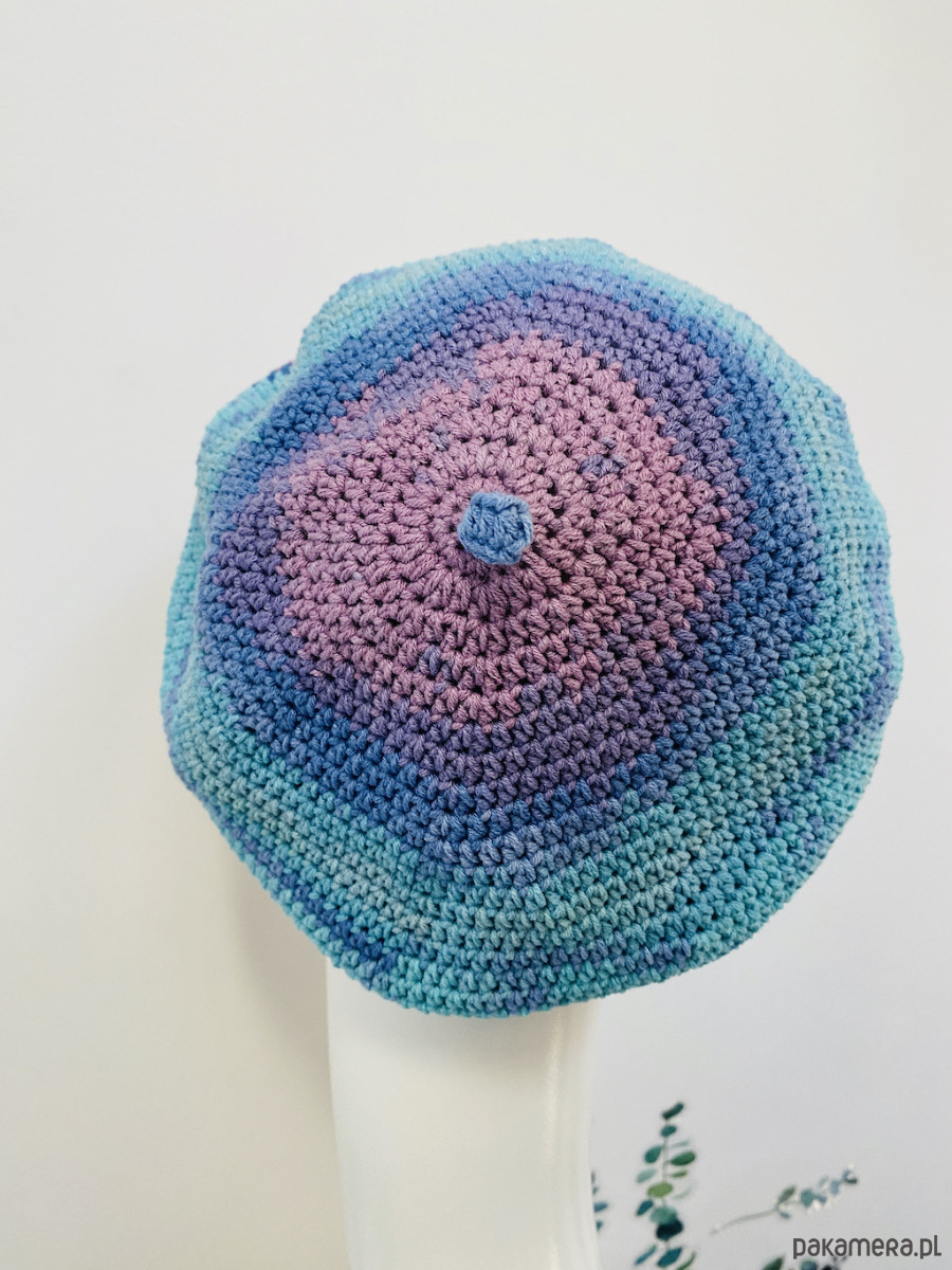Lekki, wiosenny beret wykonałam ręcznie na szydełku z wysokiej jakości włóczki bawełniano-akrylowej, która zapewnia wygodę noszenia przez cały dzień. Certyfikat OEKO-TEX® Standard 100 potwierdza, że przędza jest bezpieczna dla zdrowia.