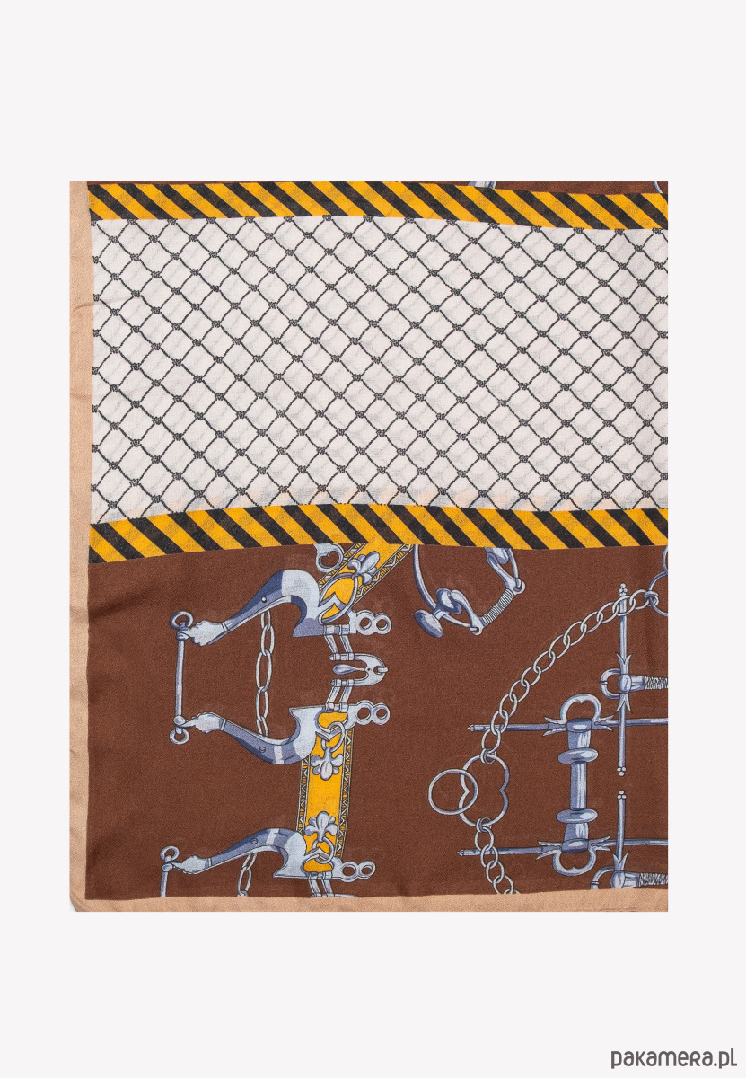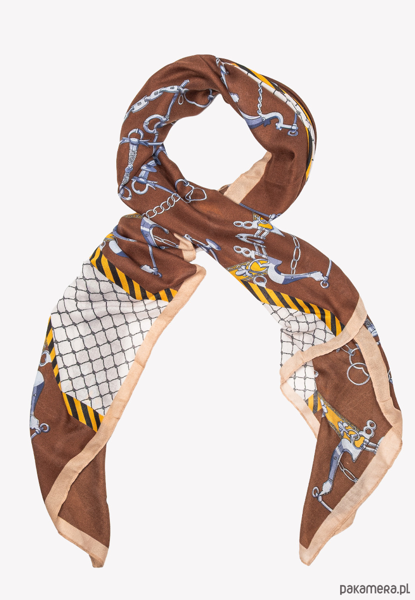 Wiosenny Szal damski wiskoza 100% brązowy z motywem jeździeckim