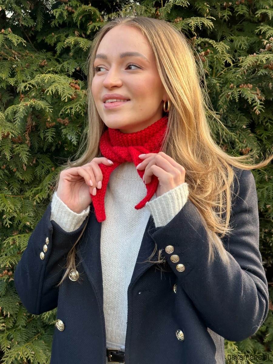 Na zdjęciach przedstawiony jest szalik w kolorze bordowym oraz czerwonym ♥️