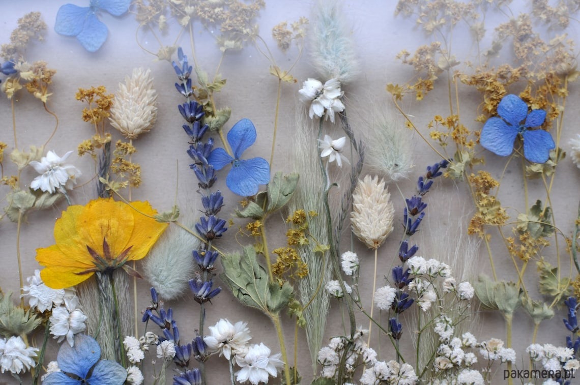 Połączenie dwóch dziedzin sztuki, sztuki suszenia i układania kwiatów i sztuki witrażownictwa.