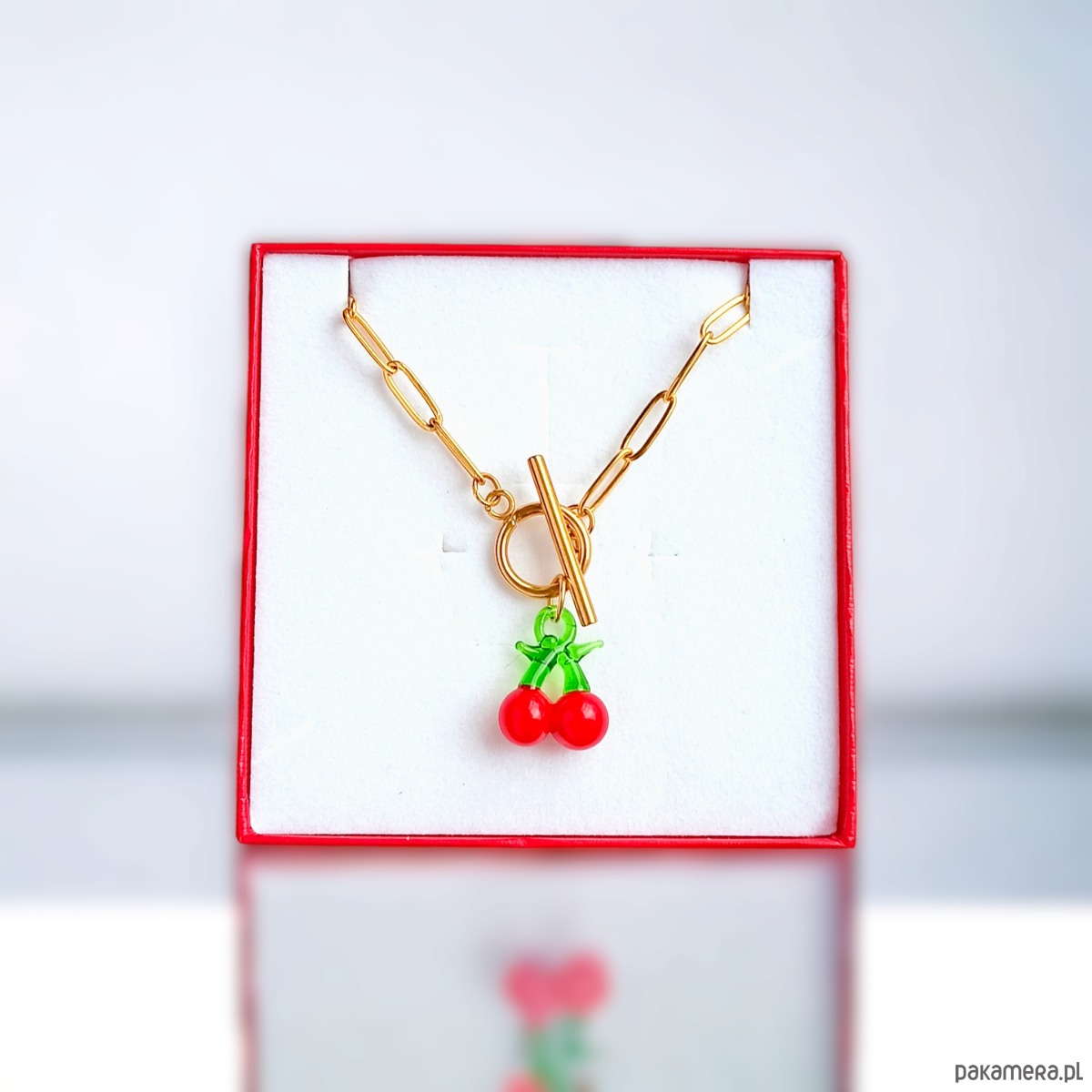 Wisienki : naszyjnik : zapięcie toggle : czerwone pudełeczko