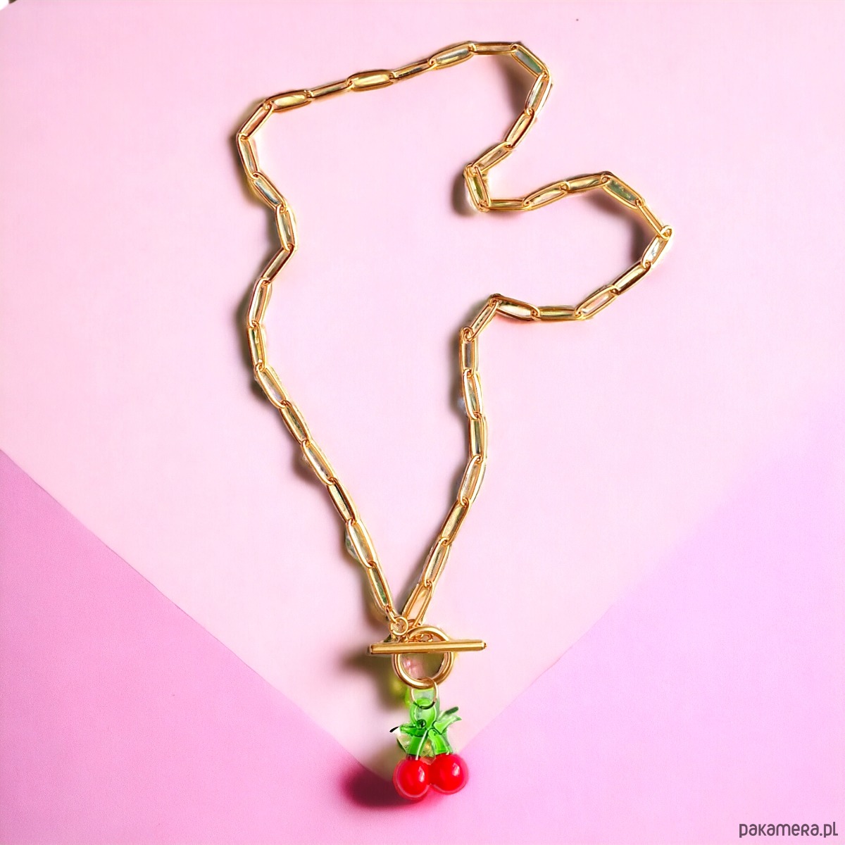 Wisienki : prosty, uroczy naszyjnik ze szklanymi wisienkami.