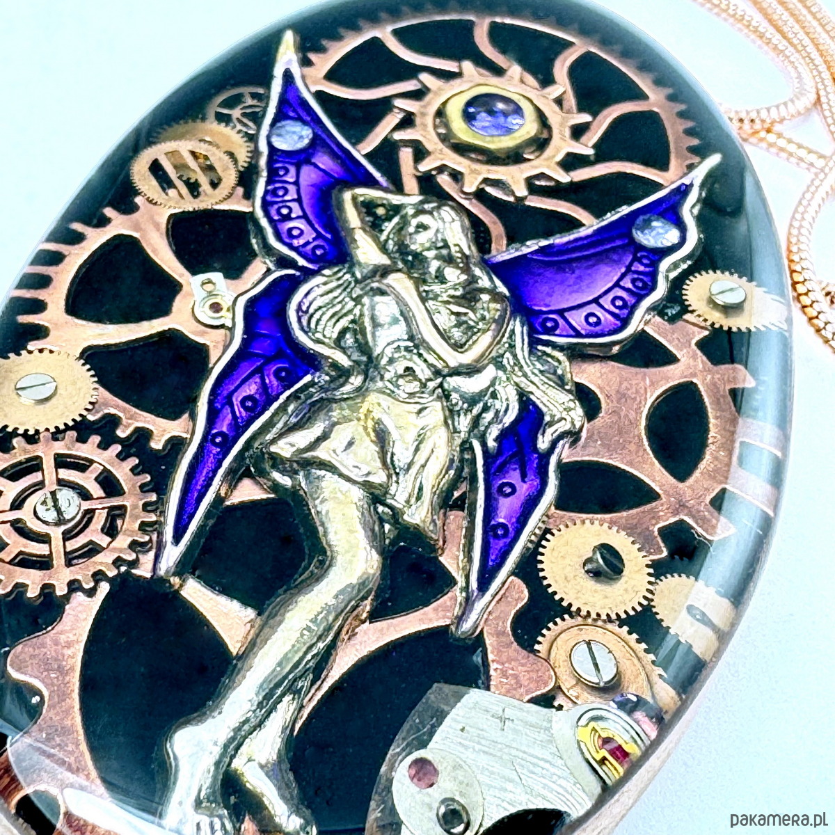 - Materiał: trybiki i elementy ze starych mechanizmów zegarka, Królowa z gracją przemieszczająca się po zaułkach życia. Lekkość i radość z każdego dnia daje jej siłę by płynąć z rozkoszą przez czas.