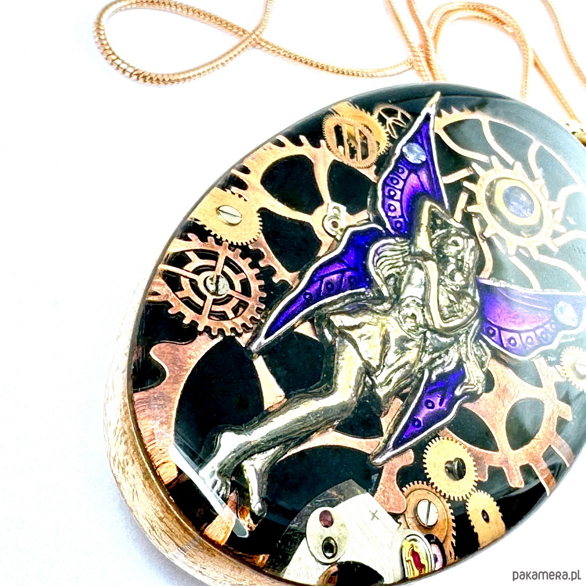 - Materiał: trybiki i elementy ze starych mechanizmów zegarka, Królowa z gracją przemieszczająca się po zaułkach życia. Lekkość i radość z każdego dnia daje jej siłę by płynąć z rozkoszą przez czas.