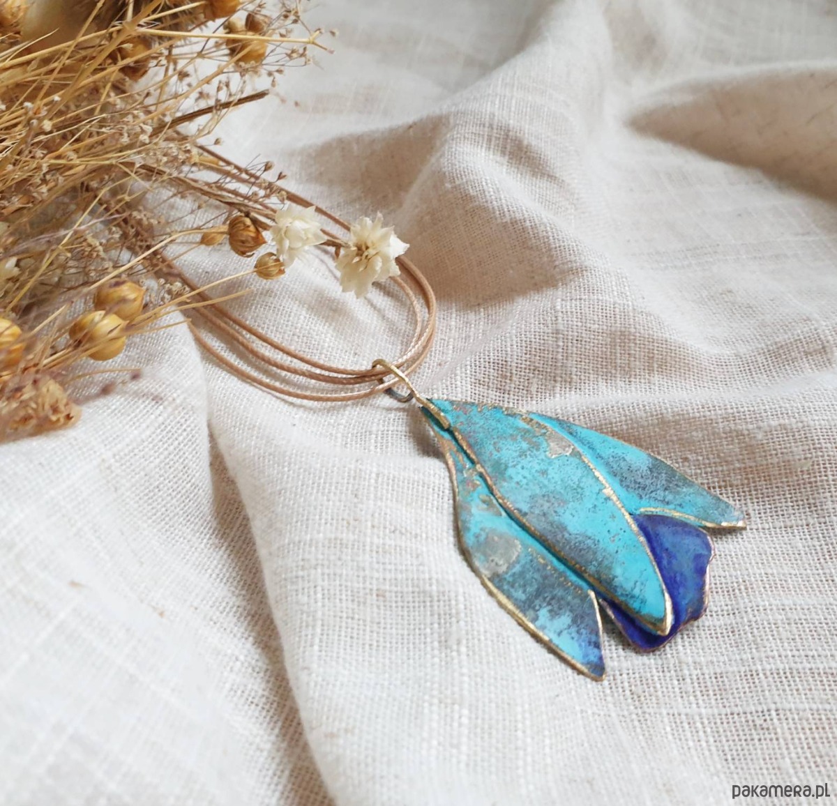 kolorystyka: patyna- niebieski, błękit, metal – mosiądz