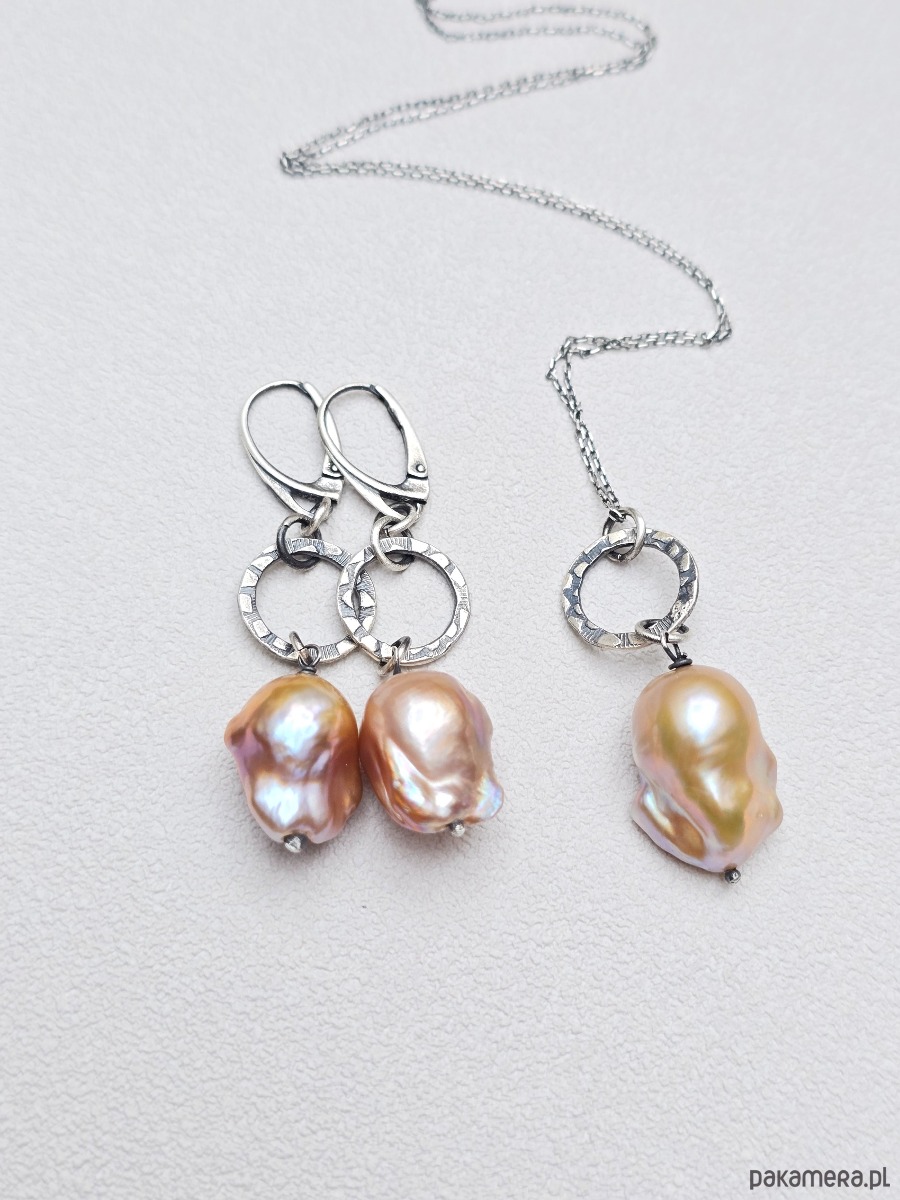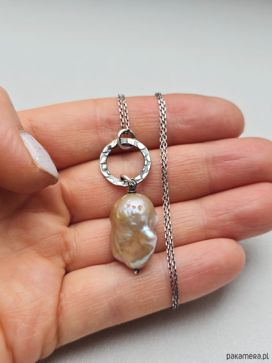 Piękny wisior z unikatową barokową perłą w beżowo- różowym kolorze .