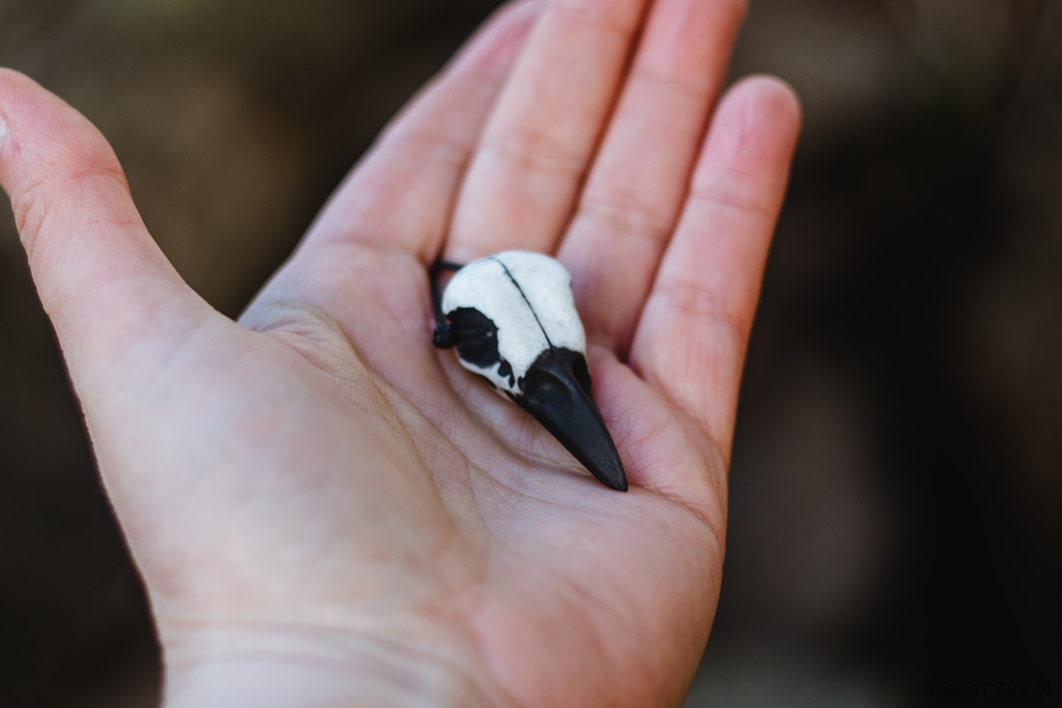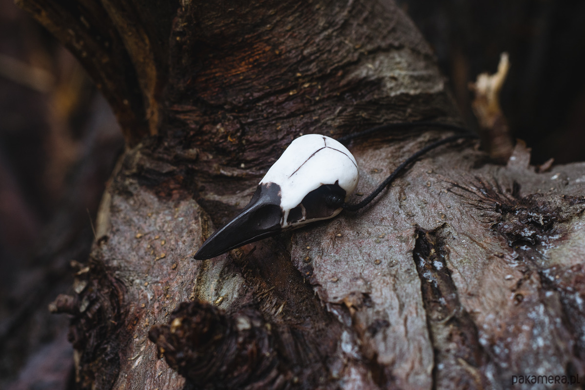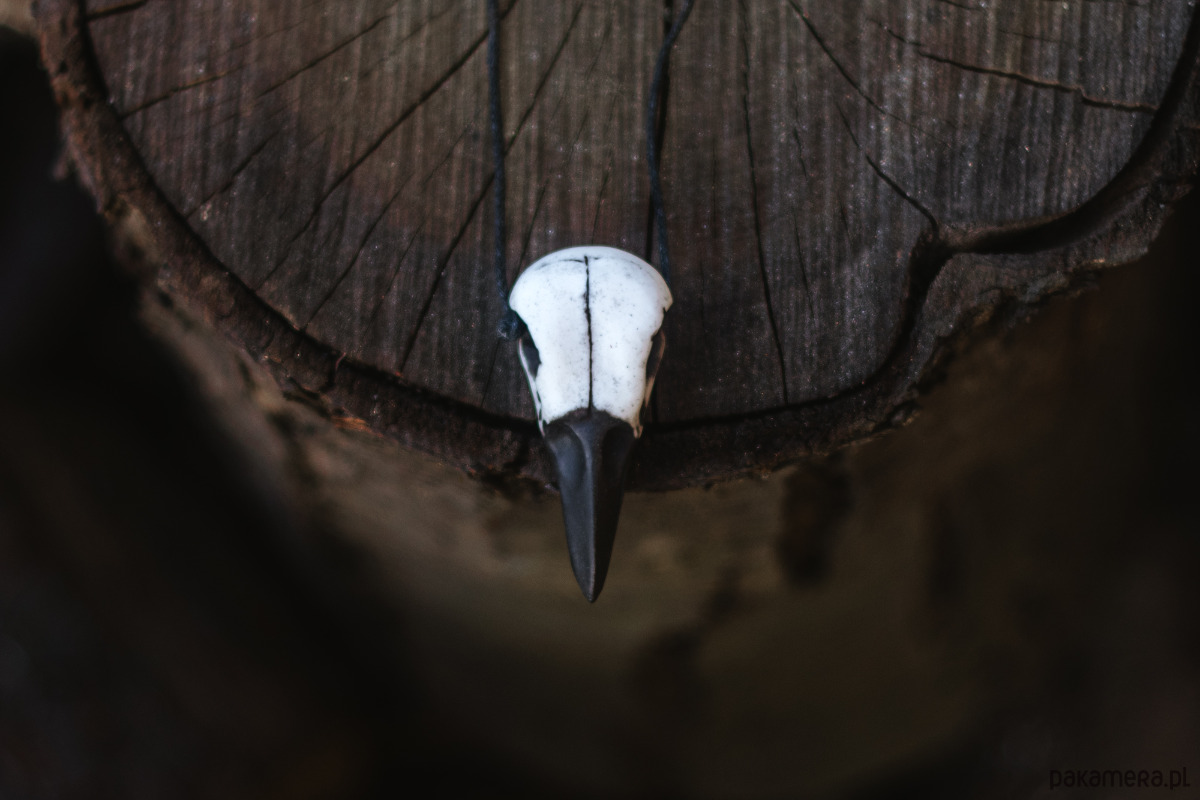 Stylowy wisiorek w mrocznej estetyce w kształcie czaszki ptaka - kruka. Idealna biżuteria dla tych, którzy lubią nietypowe rzeczy.