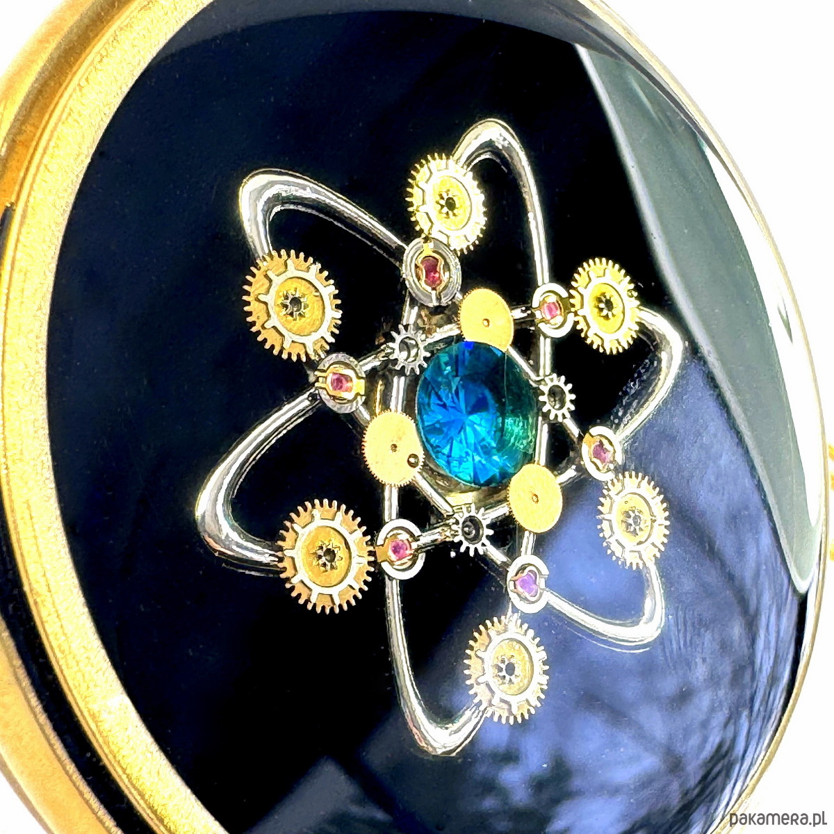 - Materiał: trybiki i elementy ze starego mechanizmu zegarka, ułożone w wyjątkowy wzór.