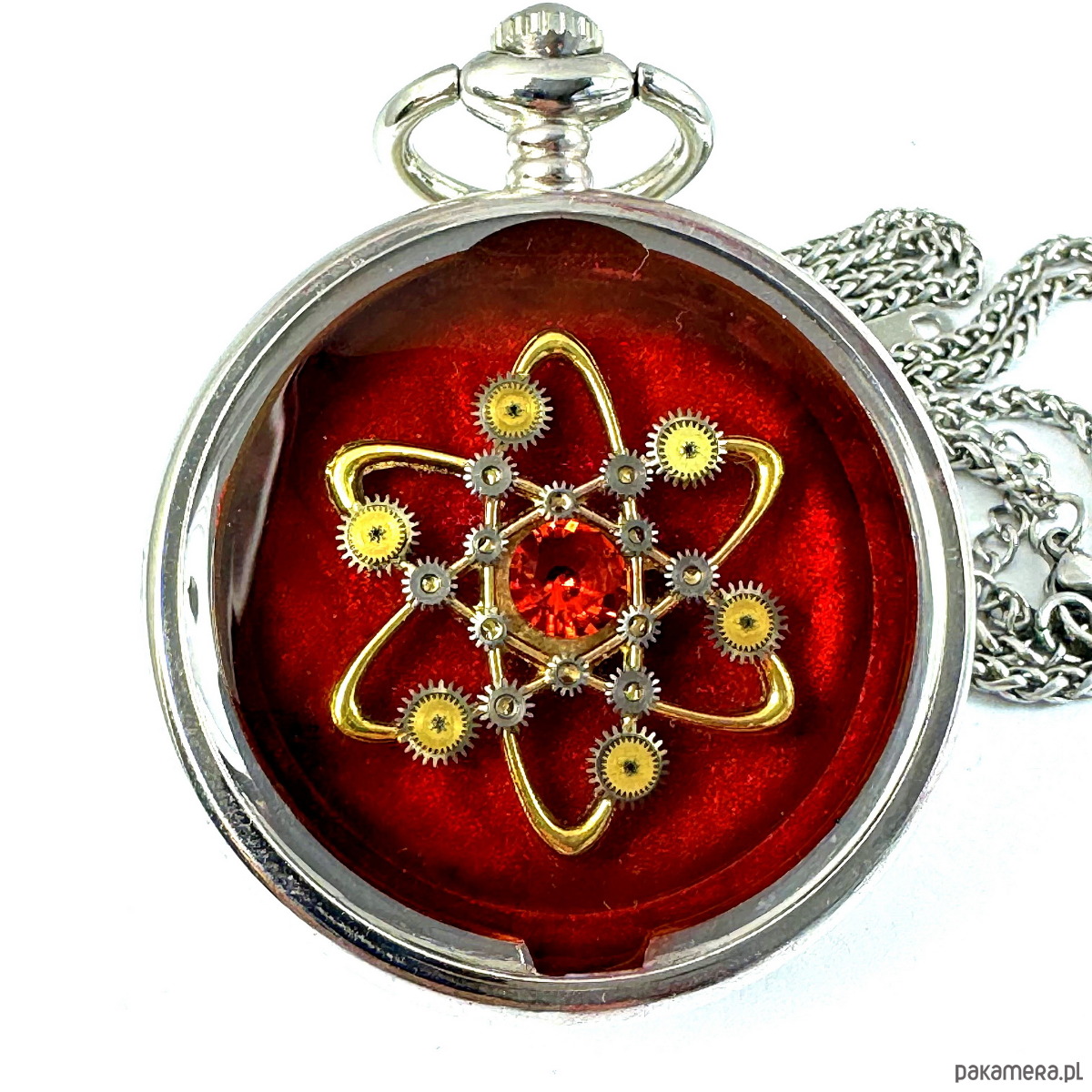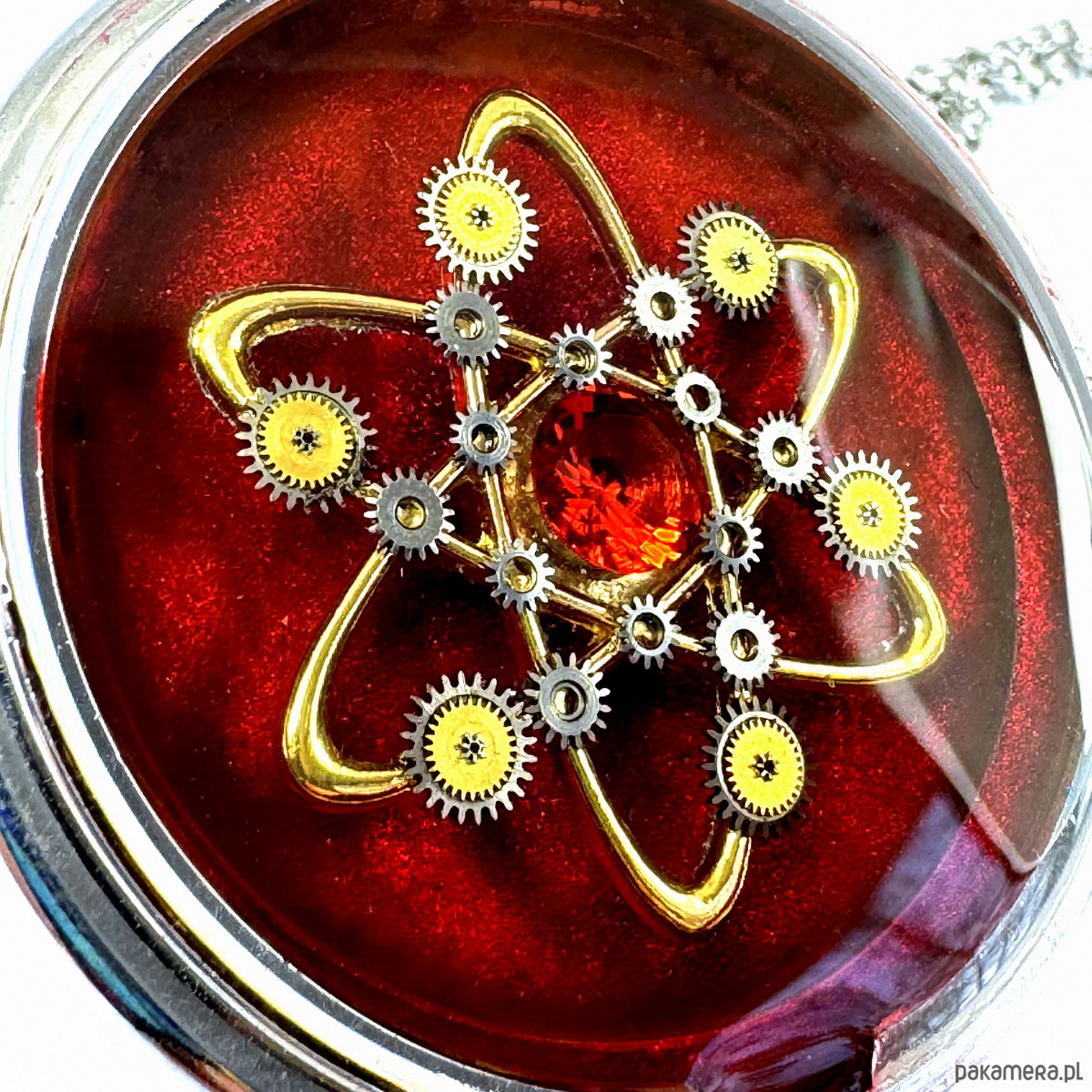 - Materiał: trybiki i elementy ze starego mechanizmu zegarka, ułożone w wyjątkowy wzór.