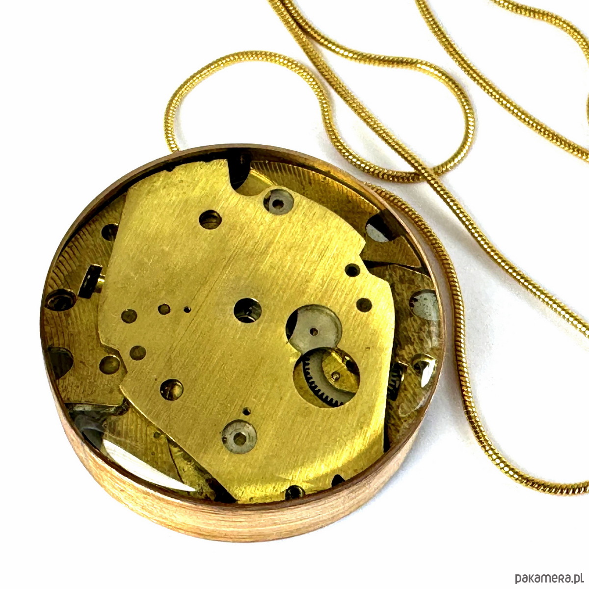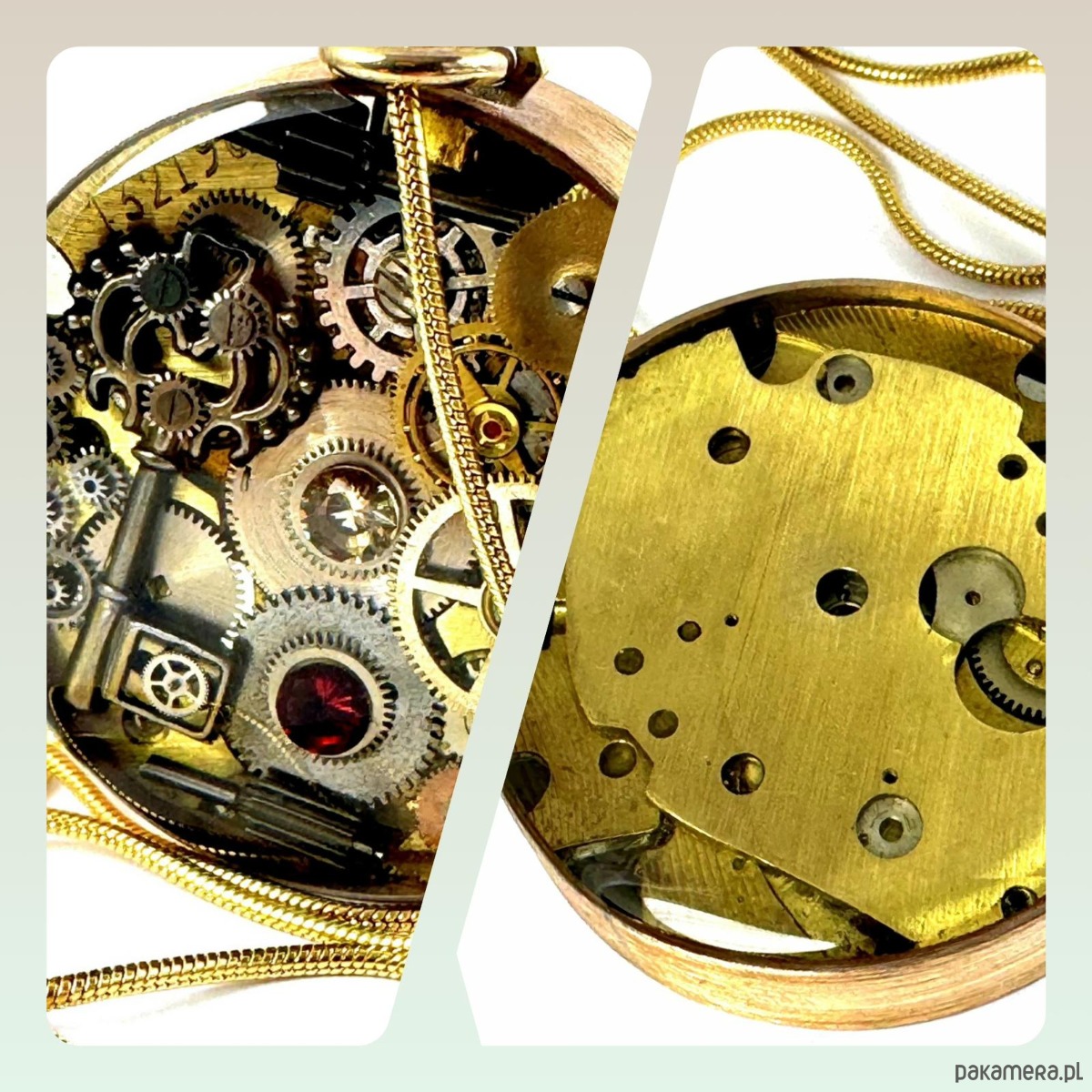 - ozdobne, odzyskane ze starych zegarków elementy użyte jako wspaniały tył zegarka. Daje to możliwość noszenia wisiora w dwie strony :-)