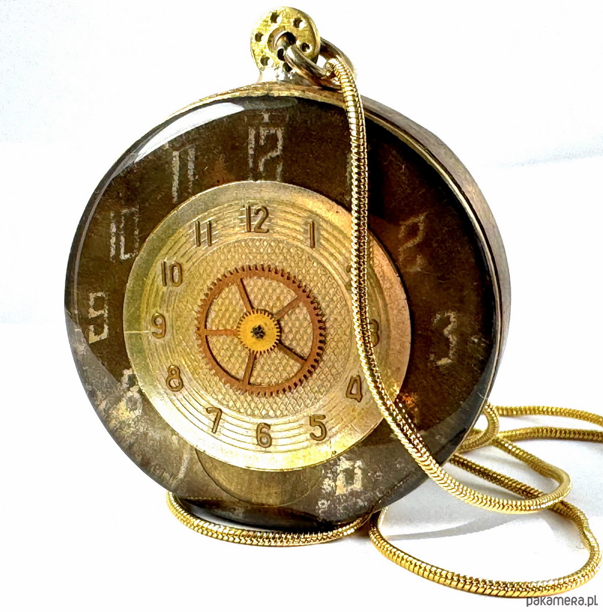 - ozdobne, odzyskane ze starych zegarków elementy użyte jako wspaniały tył zegarka. Daje to możliwość noszenia wisiora w dwie strony :-)