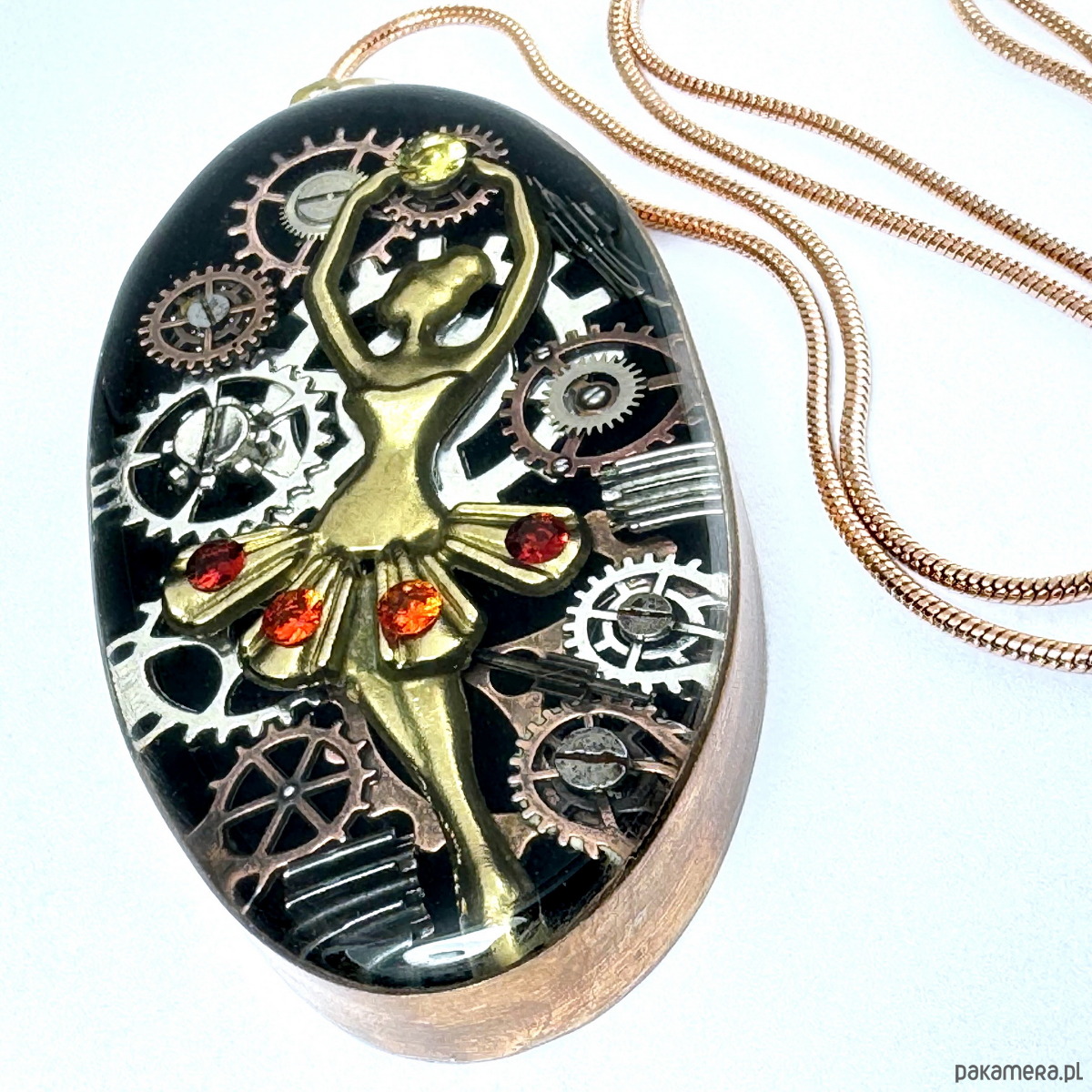 - Materiał: trybiki i elementy ze starych mechanizmów zegarka, Królowa z gracją przemieszczająca się po zaułkach życia. Lekkość i radość z każdego dnia daje jej siłę by płynąć z rozkoszą przez czas.