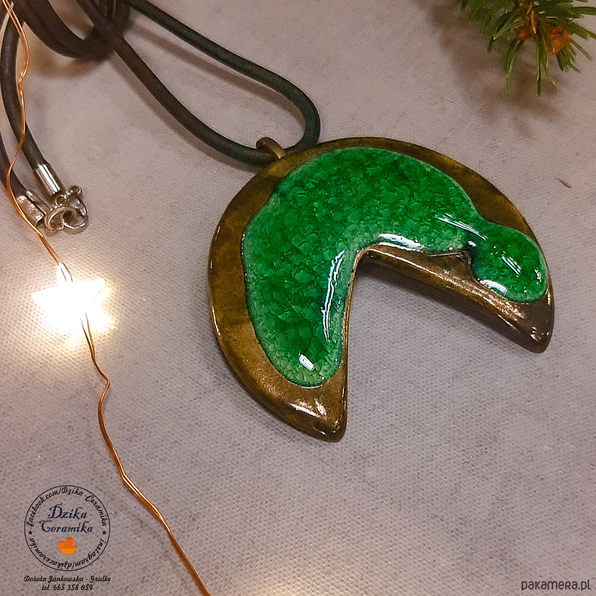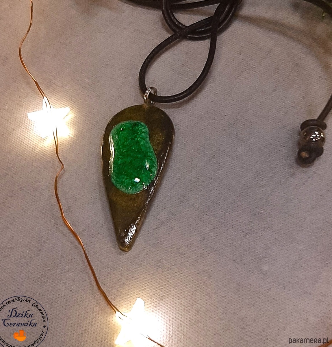 Te ręcznie uformowane i szkliwione wisiorki, zostały wykonane przy użyciu autorskiego szkliwa i zastosowaniu opracowanej przeze mnie technice wypału.