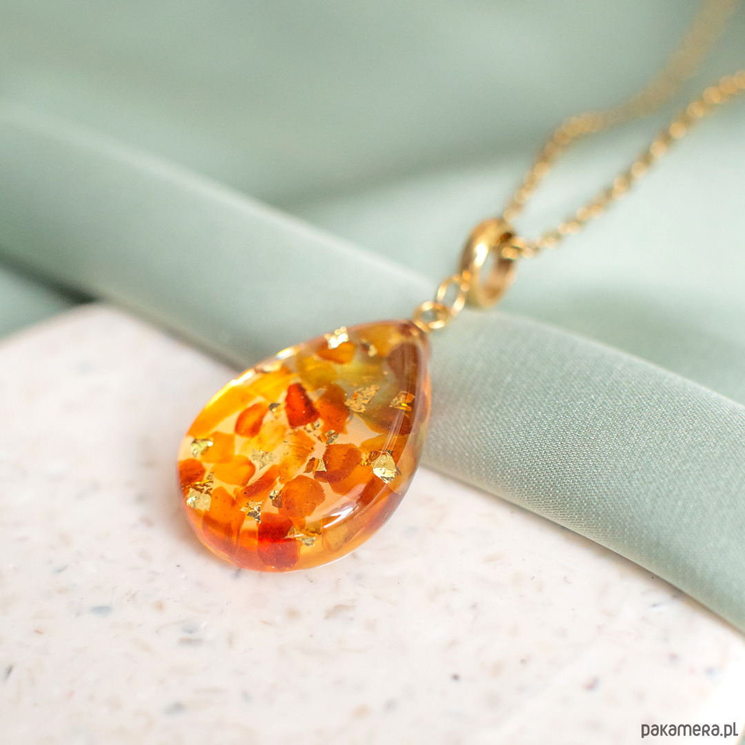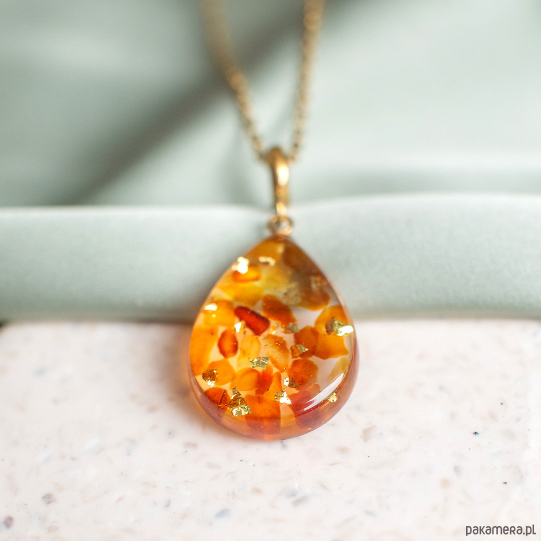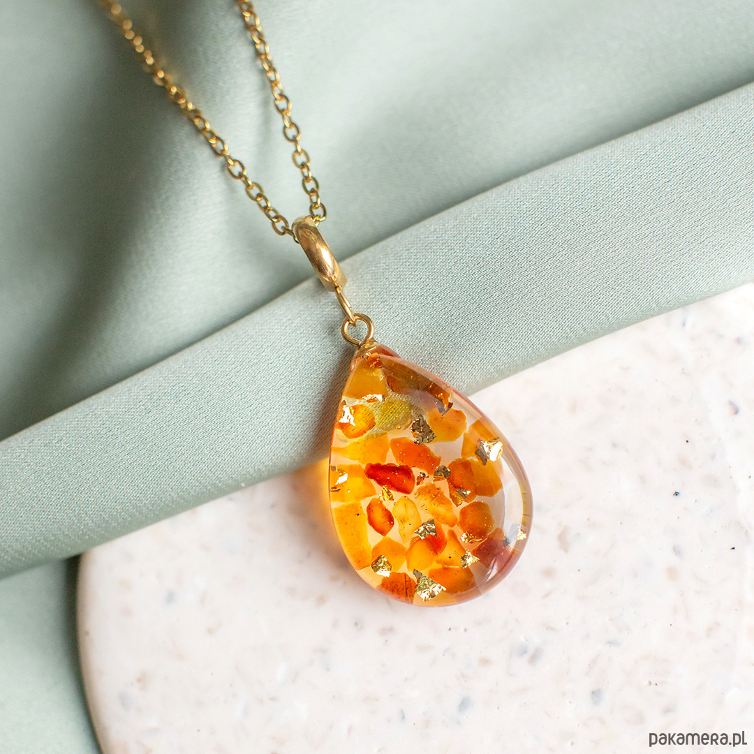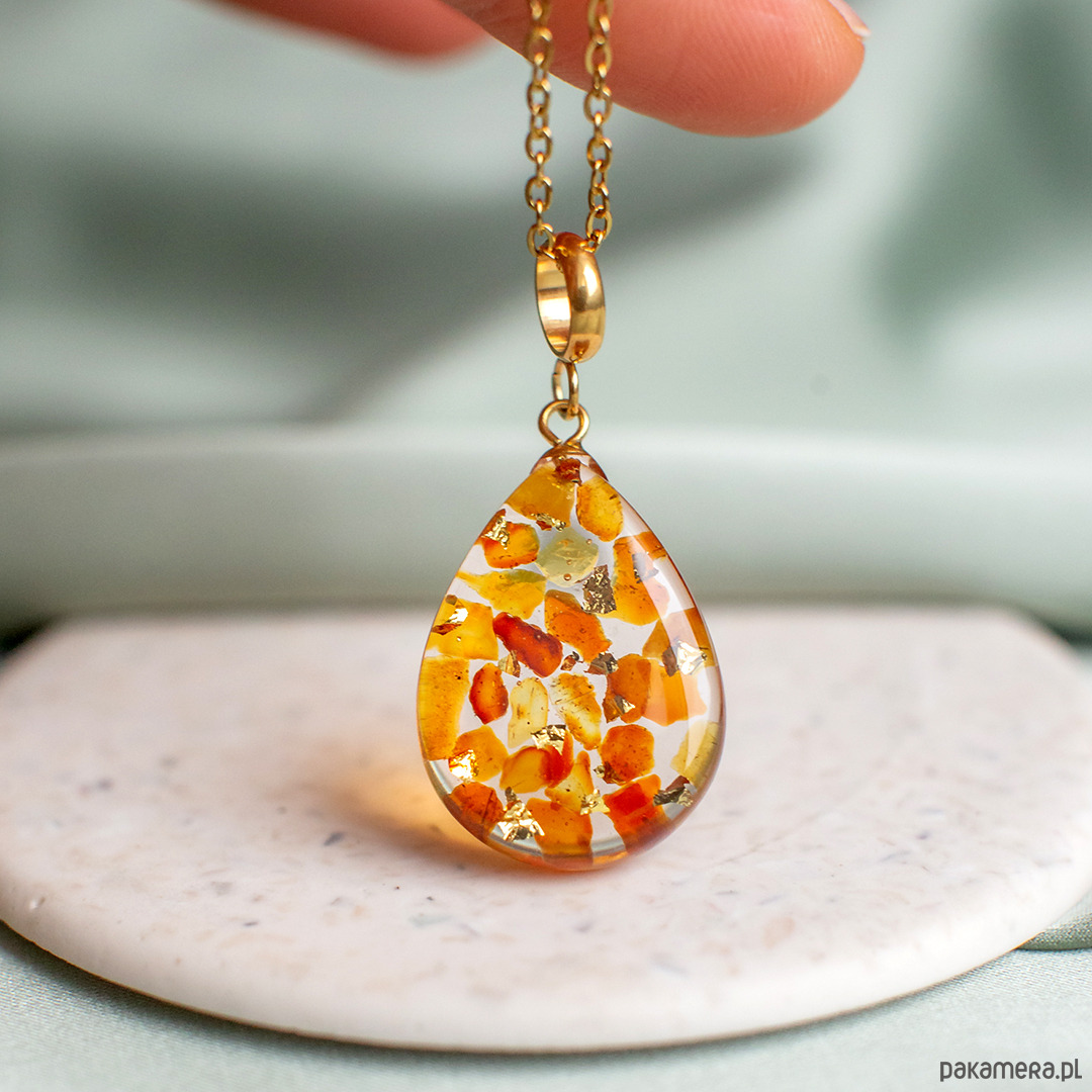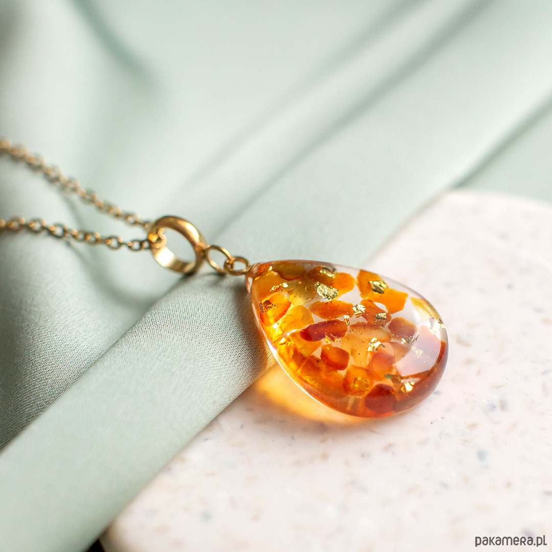 Wisiorek wykonany jest z żywicy epoksydowej . Metalowe elementy to stal nierdzewna szlachetna chirurgiczna.