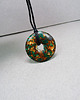 zawieszka malachit rekonstruowany z bronzytem średnica 40 mm, czarny sznurek 2,5 mm