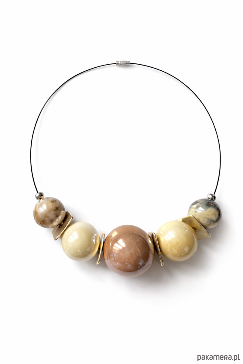 Naszyjnik wykonany jest z ceramiki oraz metalowych elementow ze stopu cynku które nie uczulaja.Korale nawleczoneczone są na rzemień z imitacji skóry.To piękny pomysł na prezent na walentynki lub dzien Babci.