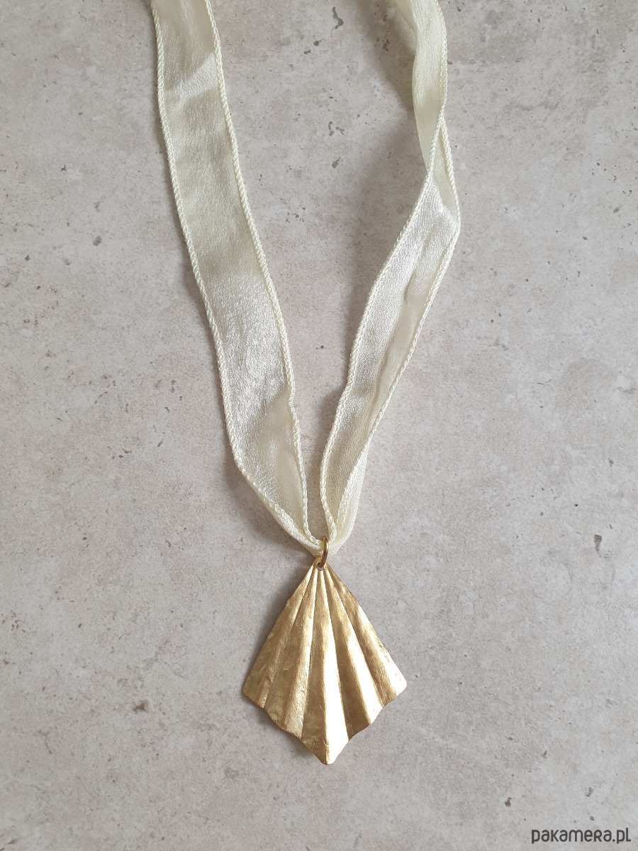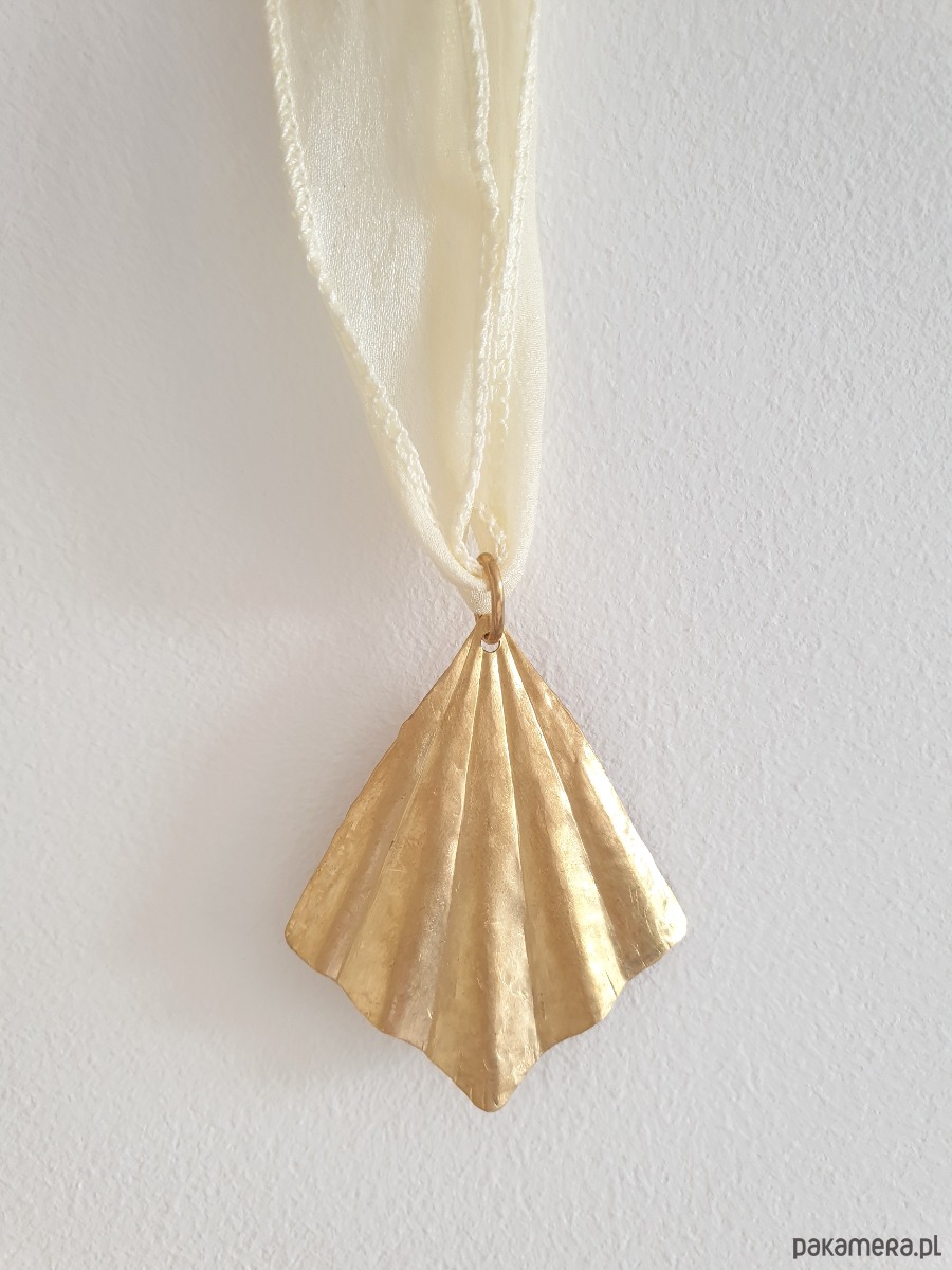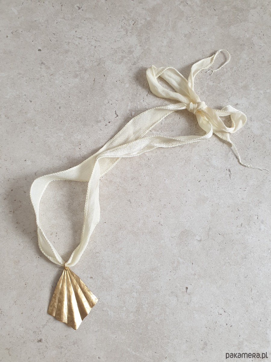 Wisior ORIGAMI duży wachlarz, kremowa szeroka jedwabna wstążka