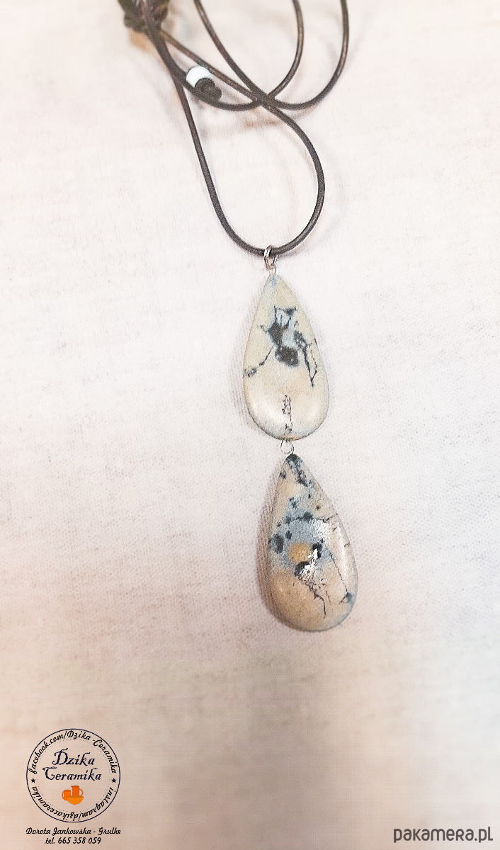 Te ręcznie uformowane i szkliwione ceramiczne wisiorki,