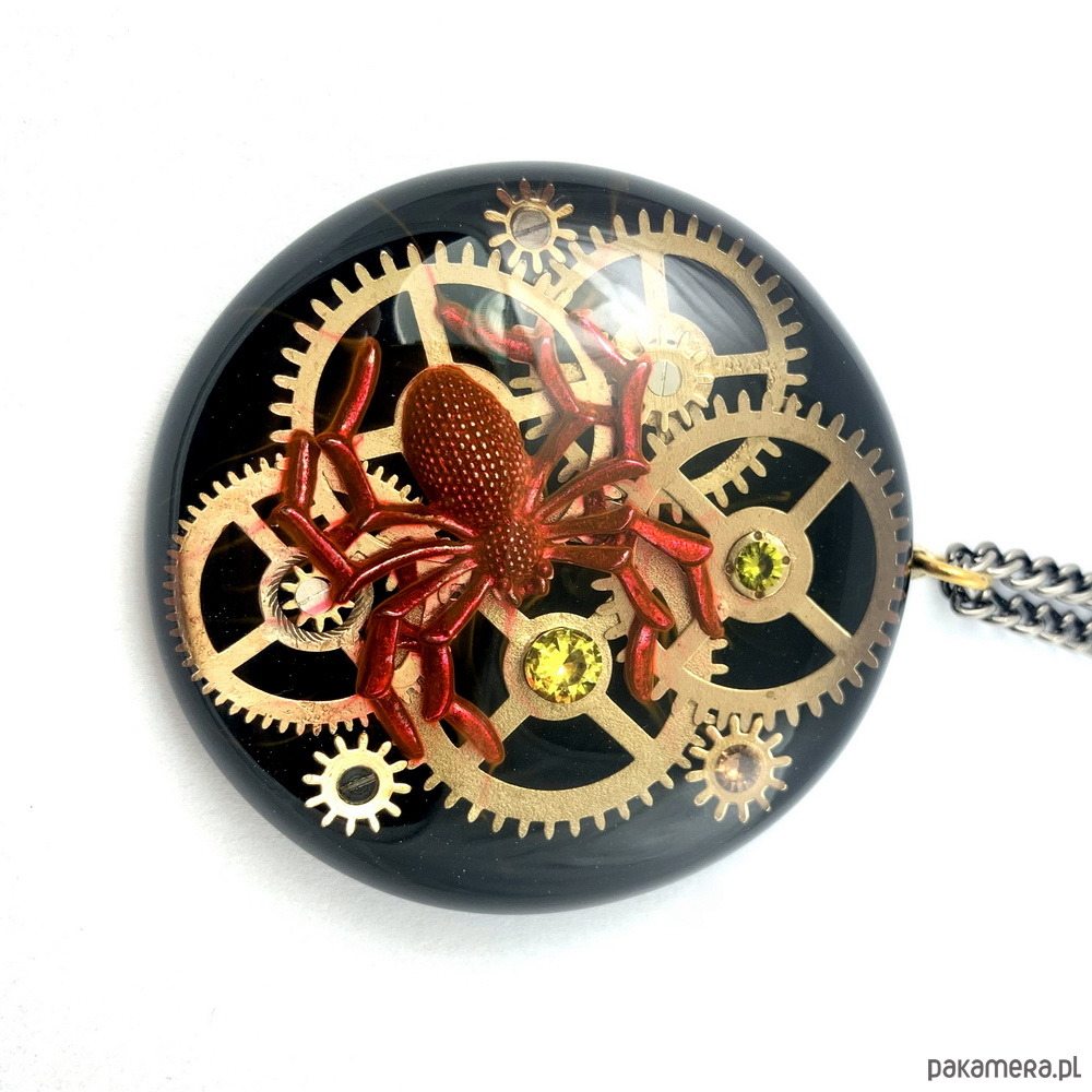 - Materiał wykonania: Żywica, mosiądz, w środku zatopione cyrkonie wraz z pięknym pająkiem.