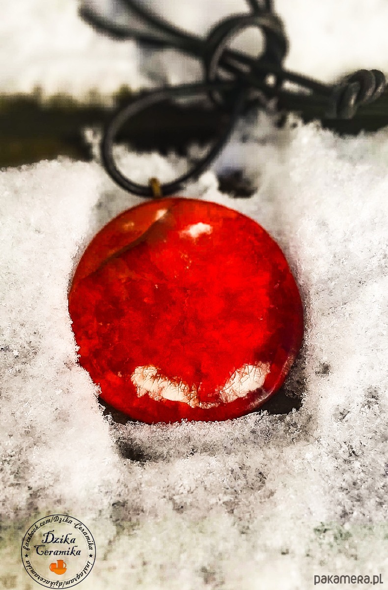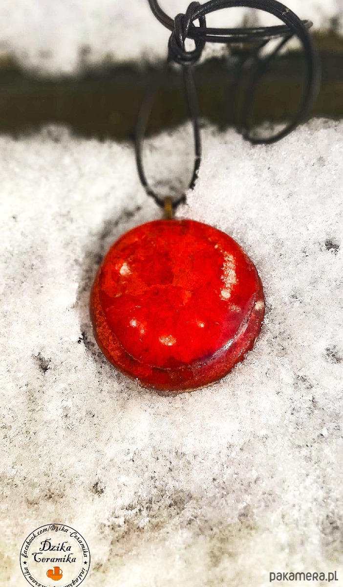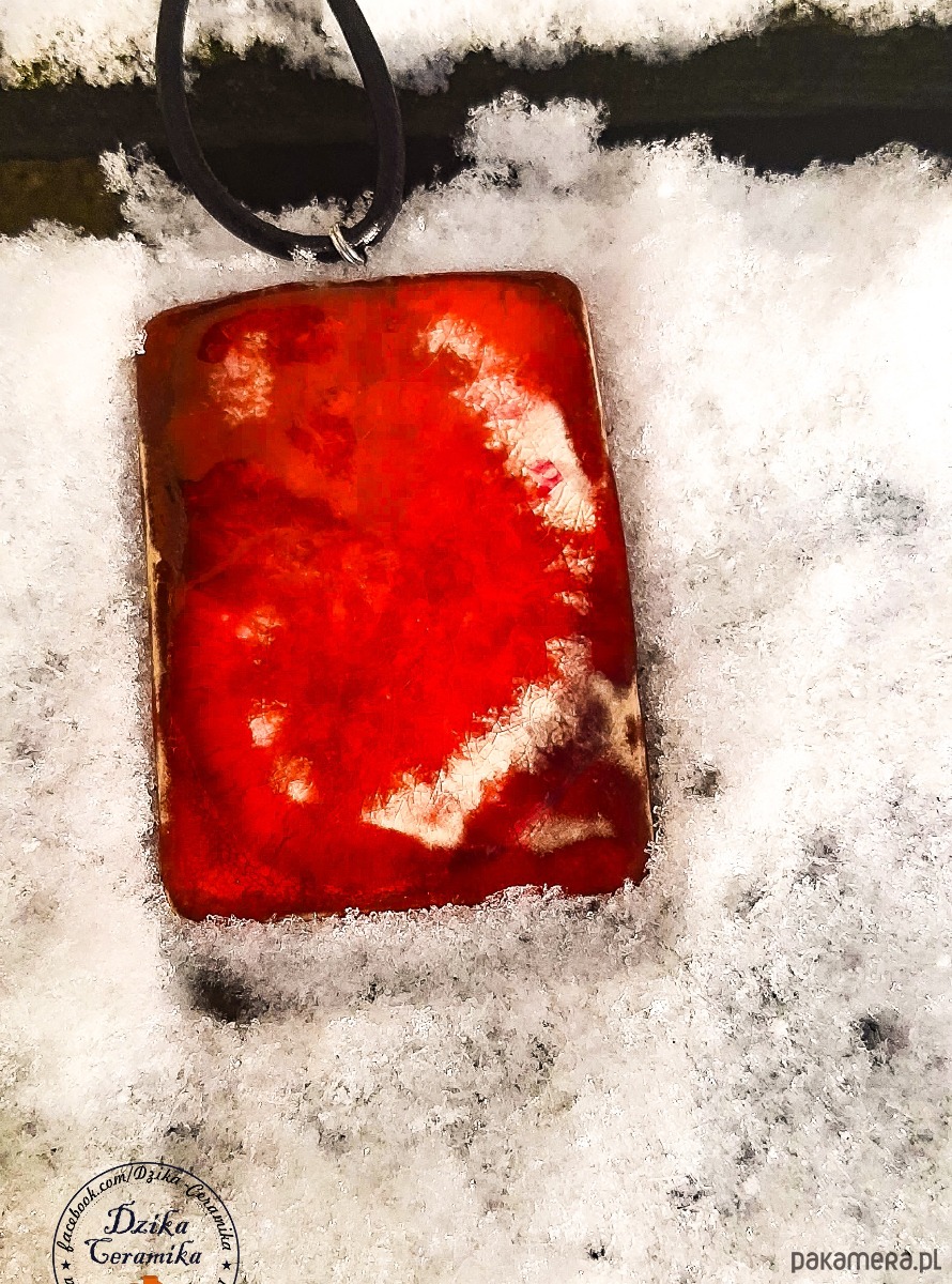 Te ręcznie uformowane i szkliwione wisiorki, zostały wykonane przy użyciu autorskiego szkliwa i zastosowaniu opracowanej przeze mnie technice wypału.