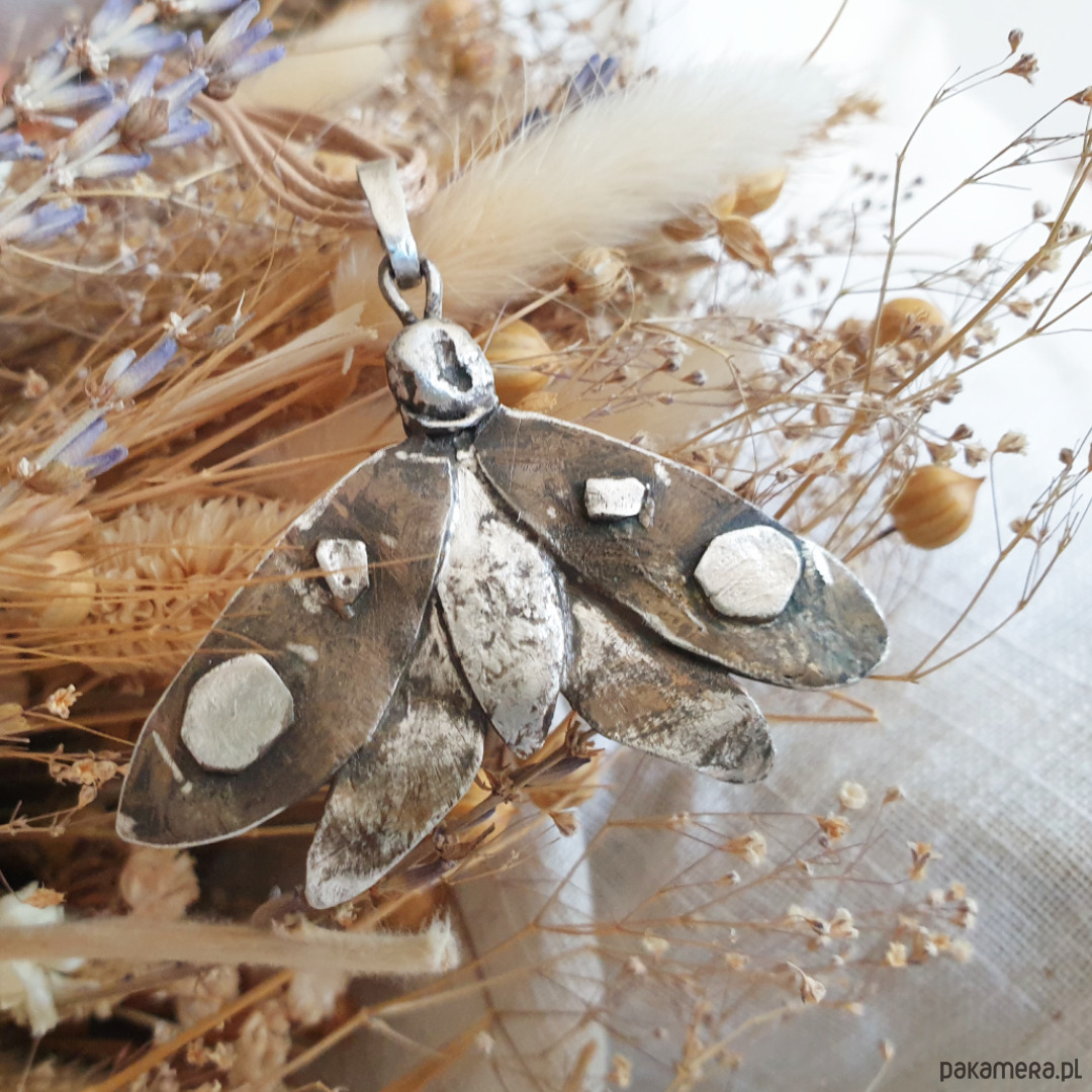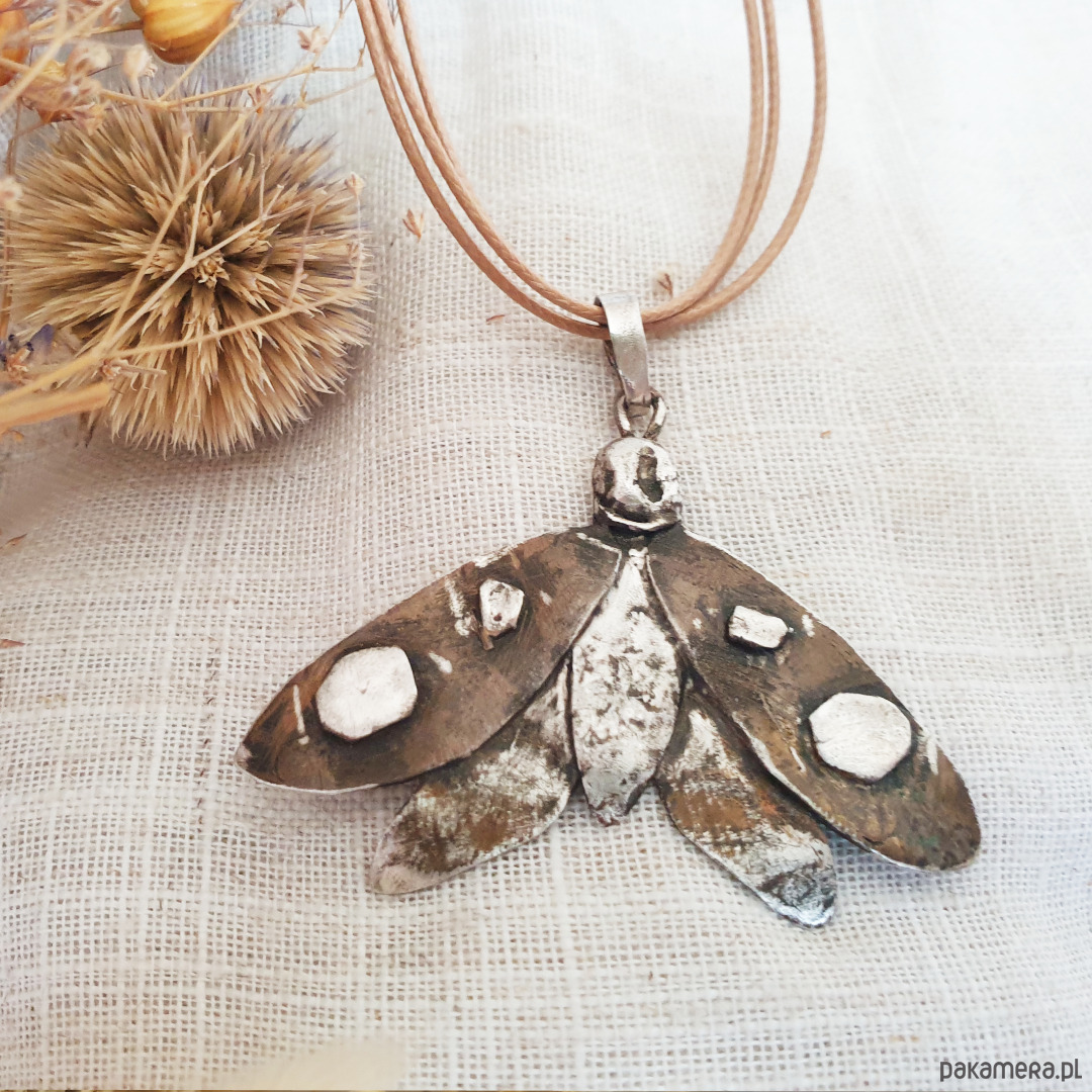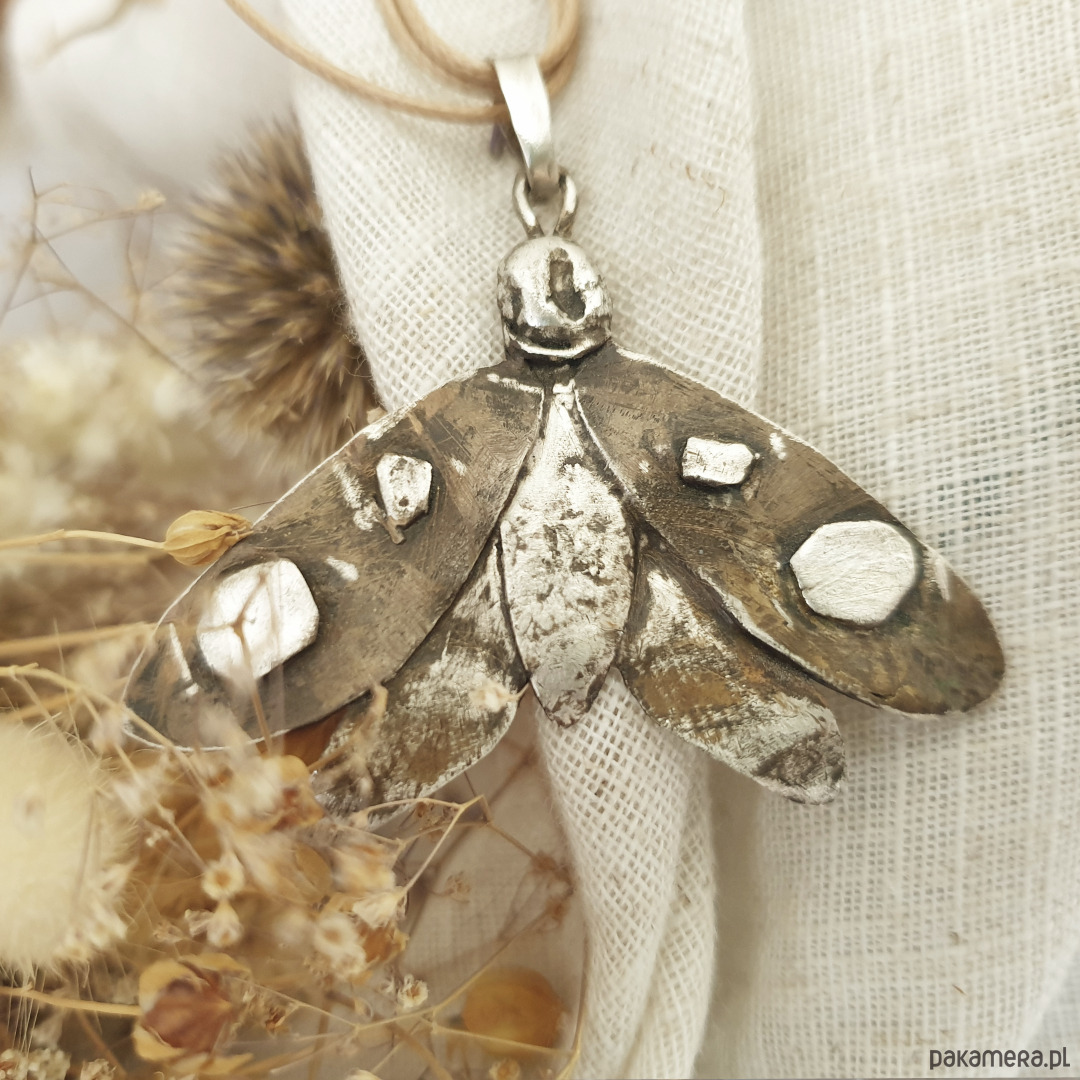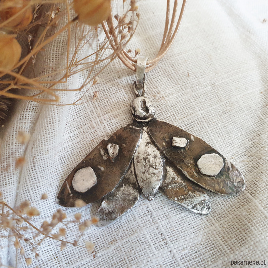 Powierzchnia srebra została oksydowana, co nadaje jej głębi i podkreśla detale skrzydeł. Każdy egzemplarz powstaje indywidualnie, dzięki czemu nie ma dwóch identycznych naszyjników.